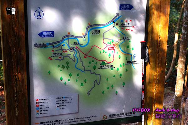 到涼亭往前走-->唐麻丹山,往左走-->蝴蝶谷瀑布