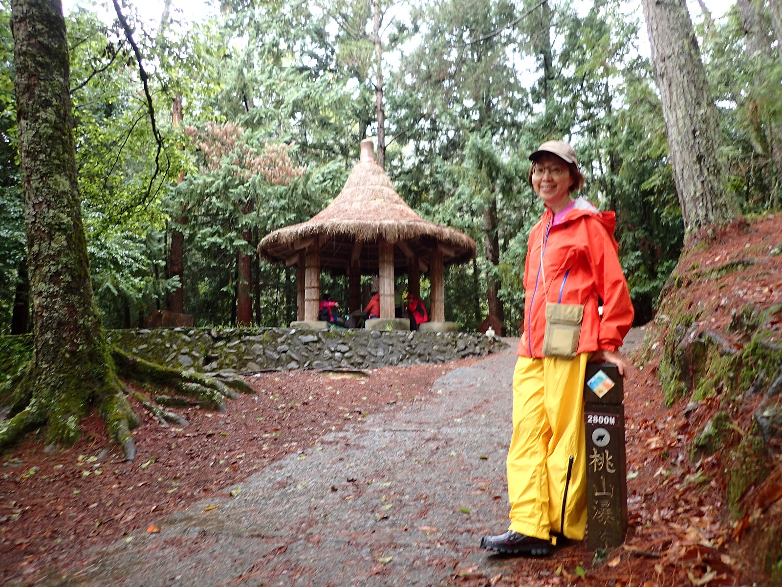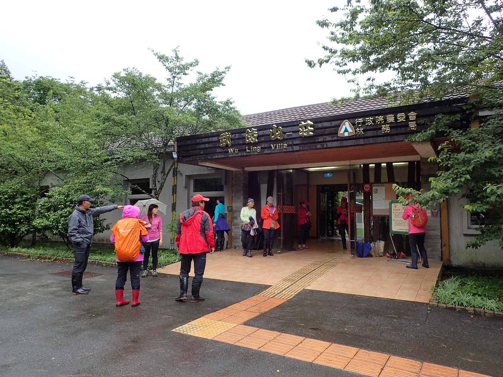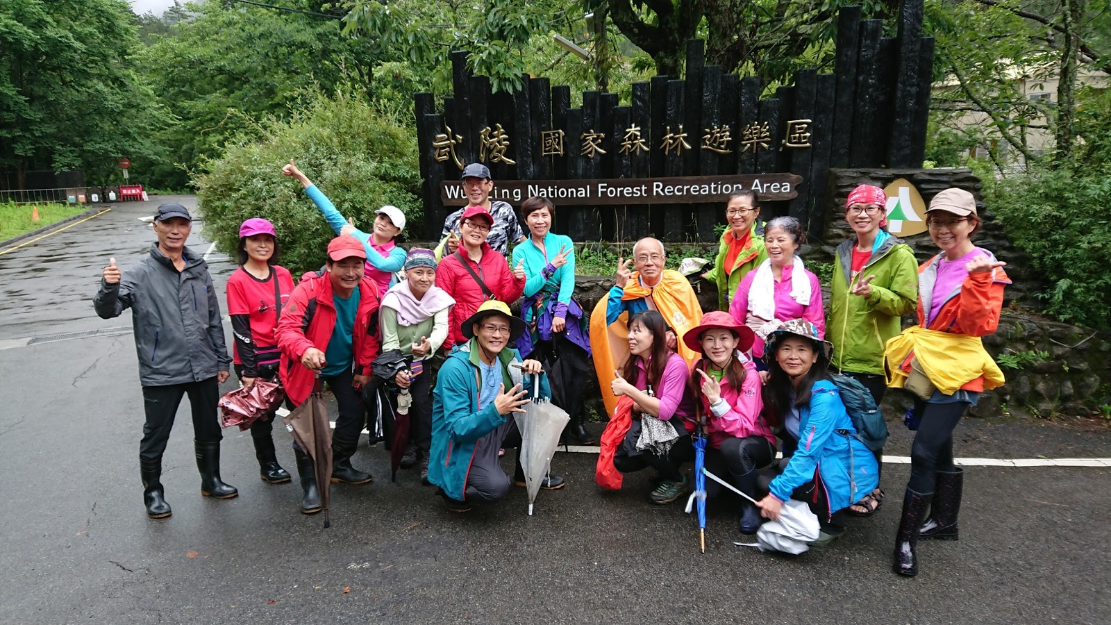雪山, 睽別30年, 我來了, 按行程計劃走主東北峰, 6:40大橋頭集合, 4輛車16人(有3人放棄), go! 出門涼爽爽的天氣沒雨耶, 心安了不少, 希望能跟平多縱走一樣好運, 一路沒雨直到南山才開始飄幾滴, 到了武陵農場後雨勢漸大沒停歇, 10:45到露營區躲雨吃中餐, 電話先問過協作, 說此時山莊雨下更大, 考慮到安全, 不敢貿然上登山口, 決定先到桃山瀑布走走, 靜觀其變