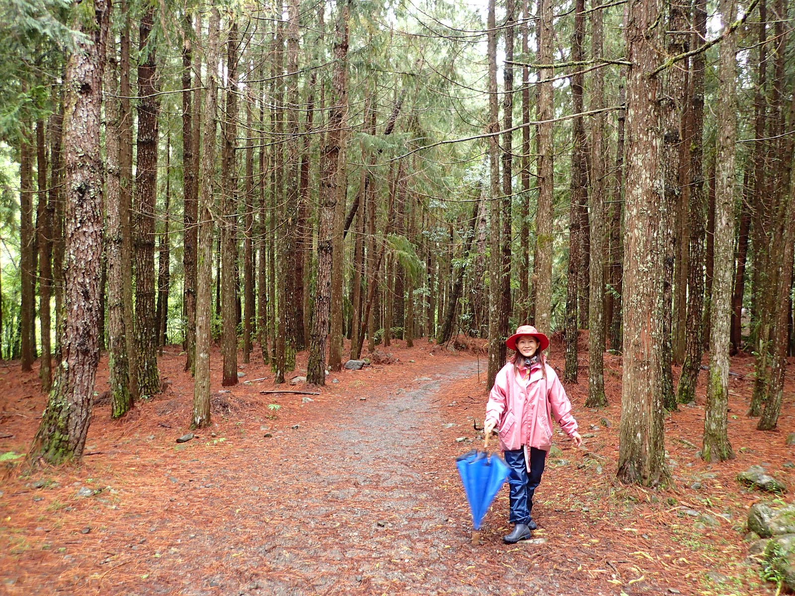 過橋後轉為上坡路, 繼續走水泥路步道, 一旁是筆直的杉木林夾道, 慢慢走, 自在的享受森林浴