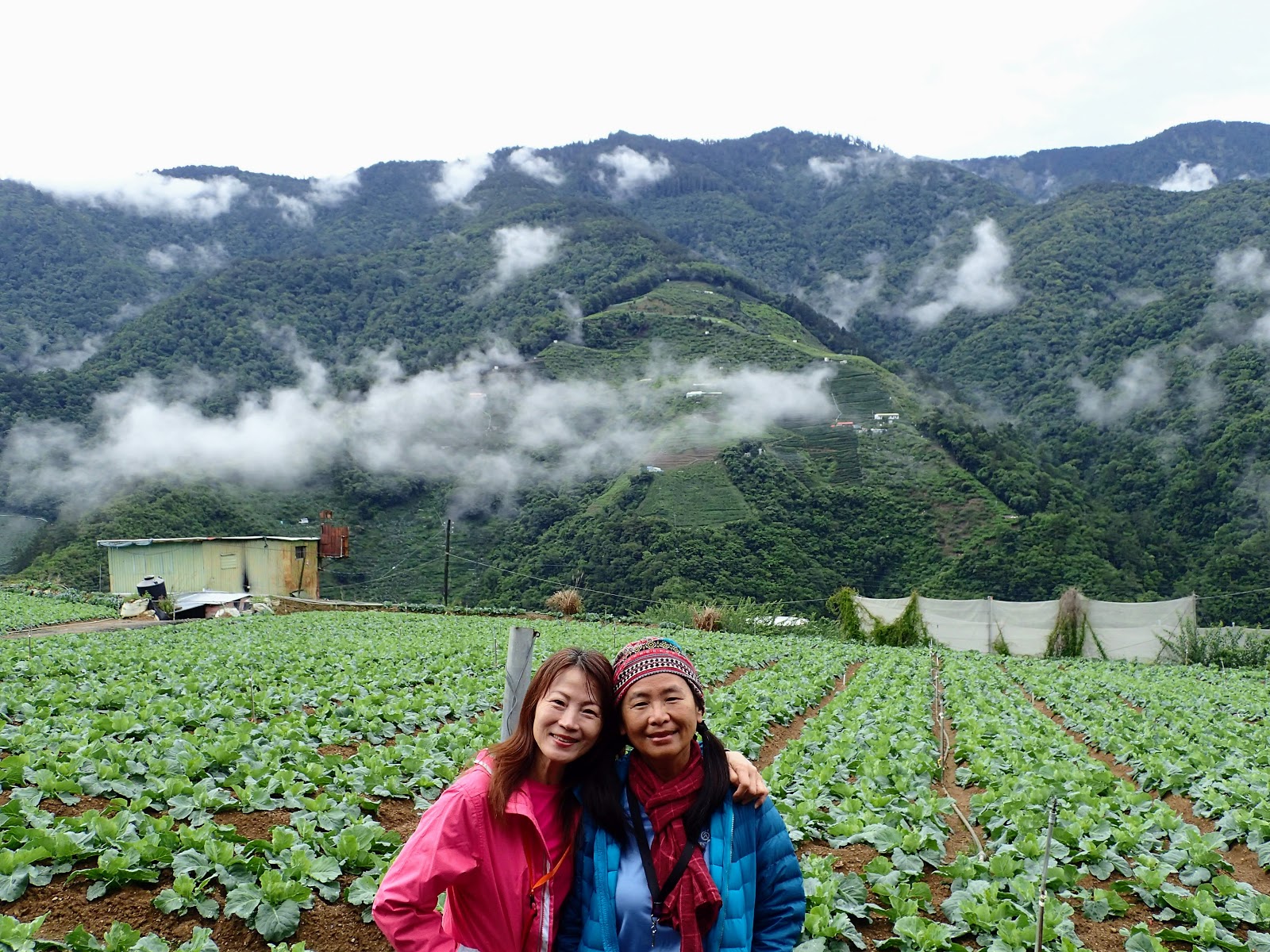 8:30 出發往松羅步道, 經過高麗菜園, 麥麥姐提議下車看看, 吼, 這麼美好的天氣....