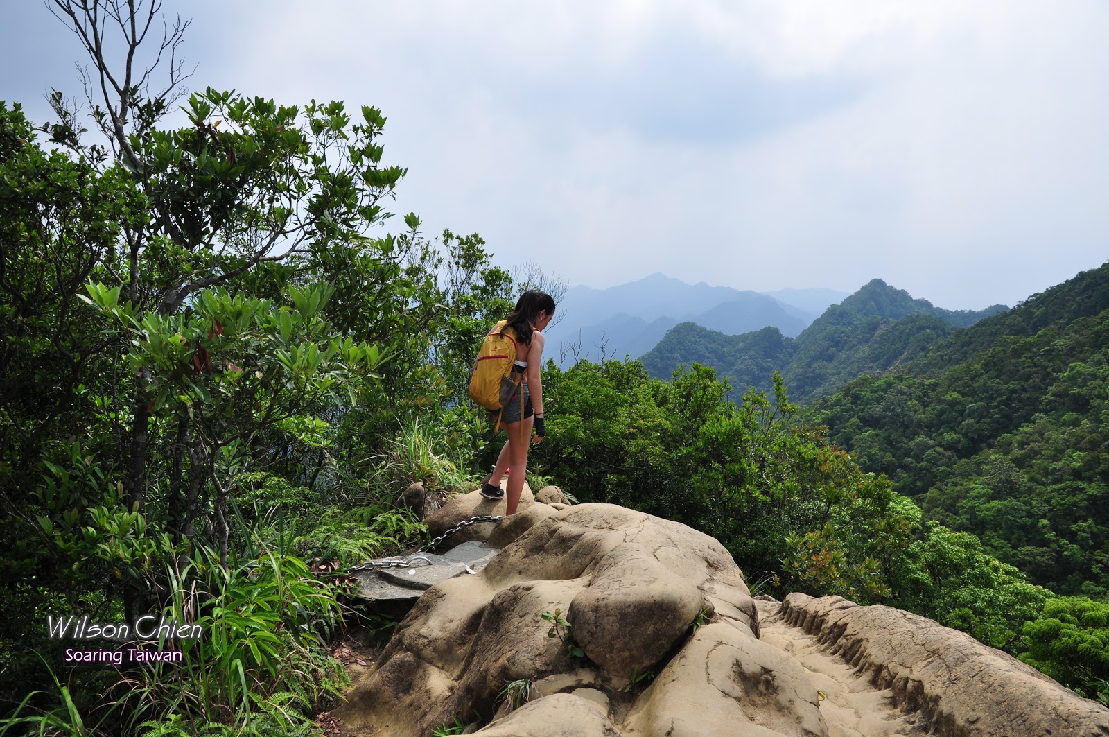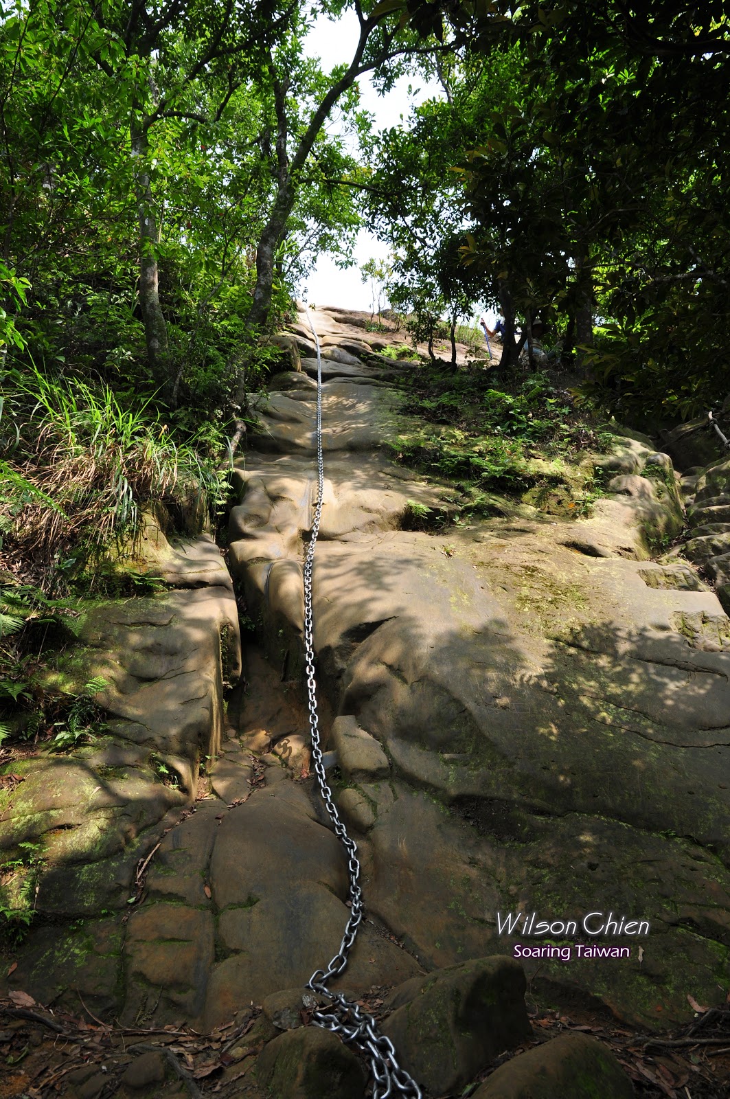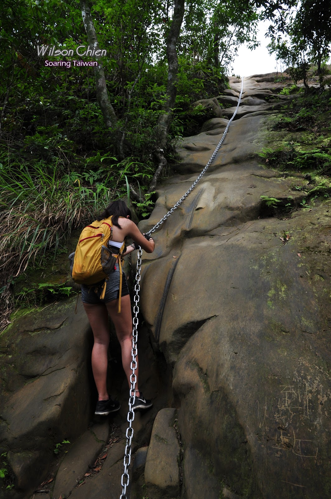 這陡直的岩壁配上鐵鍊, 讓老小躍躍欲試 !