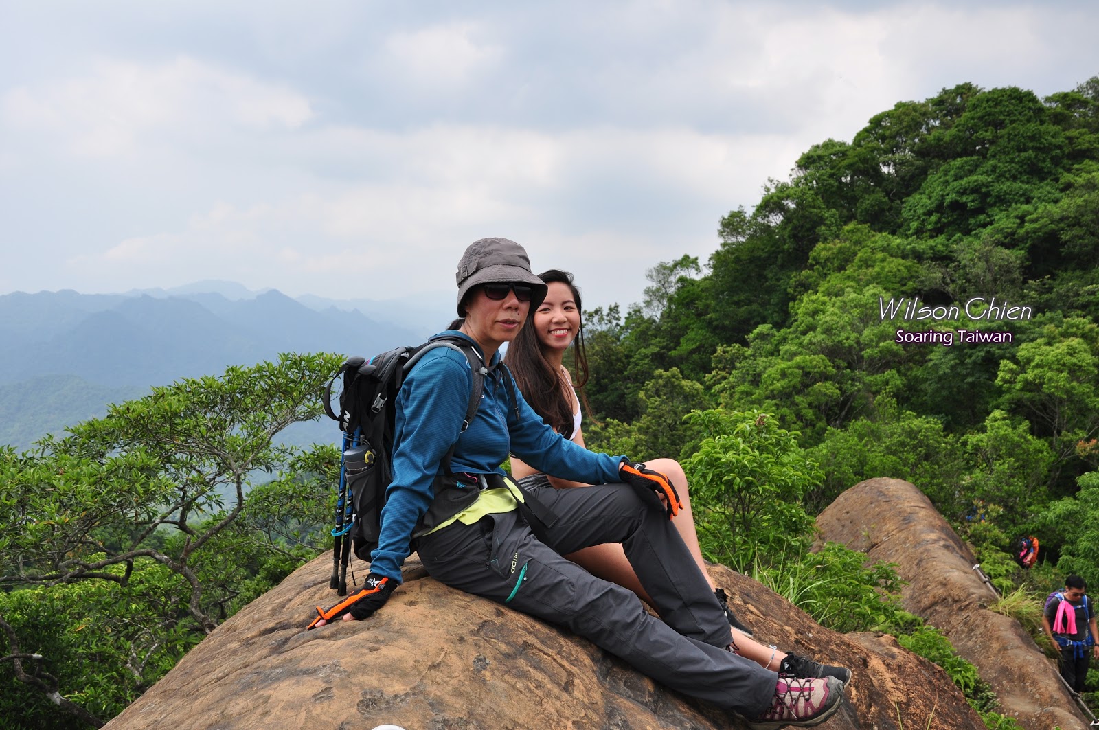 偶而遇上對面有隊伍和我們反向, 因瘦稜所以在這大石上看風景等其通過