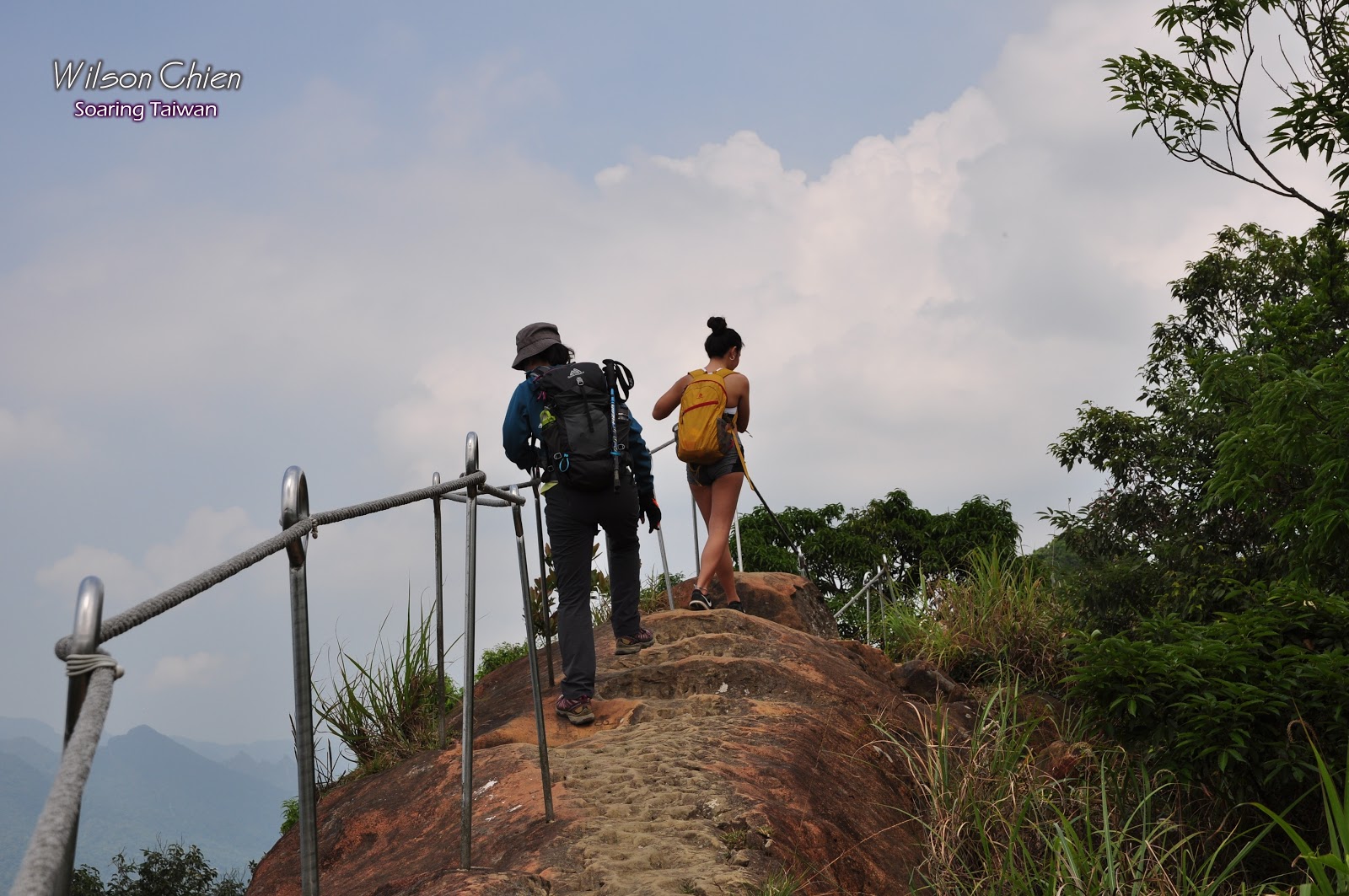 這段岩稜路還蠻安全的, 都有鋼架與繩索圍著, 且岩稜也鑿成較平坦的路,