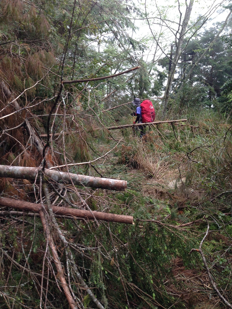 | 這就是現在230林道的路況,有大大小小的倒木與跟人一樣高的芒草需要穿越 |
