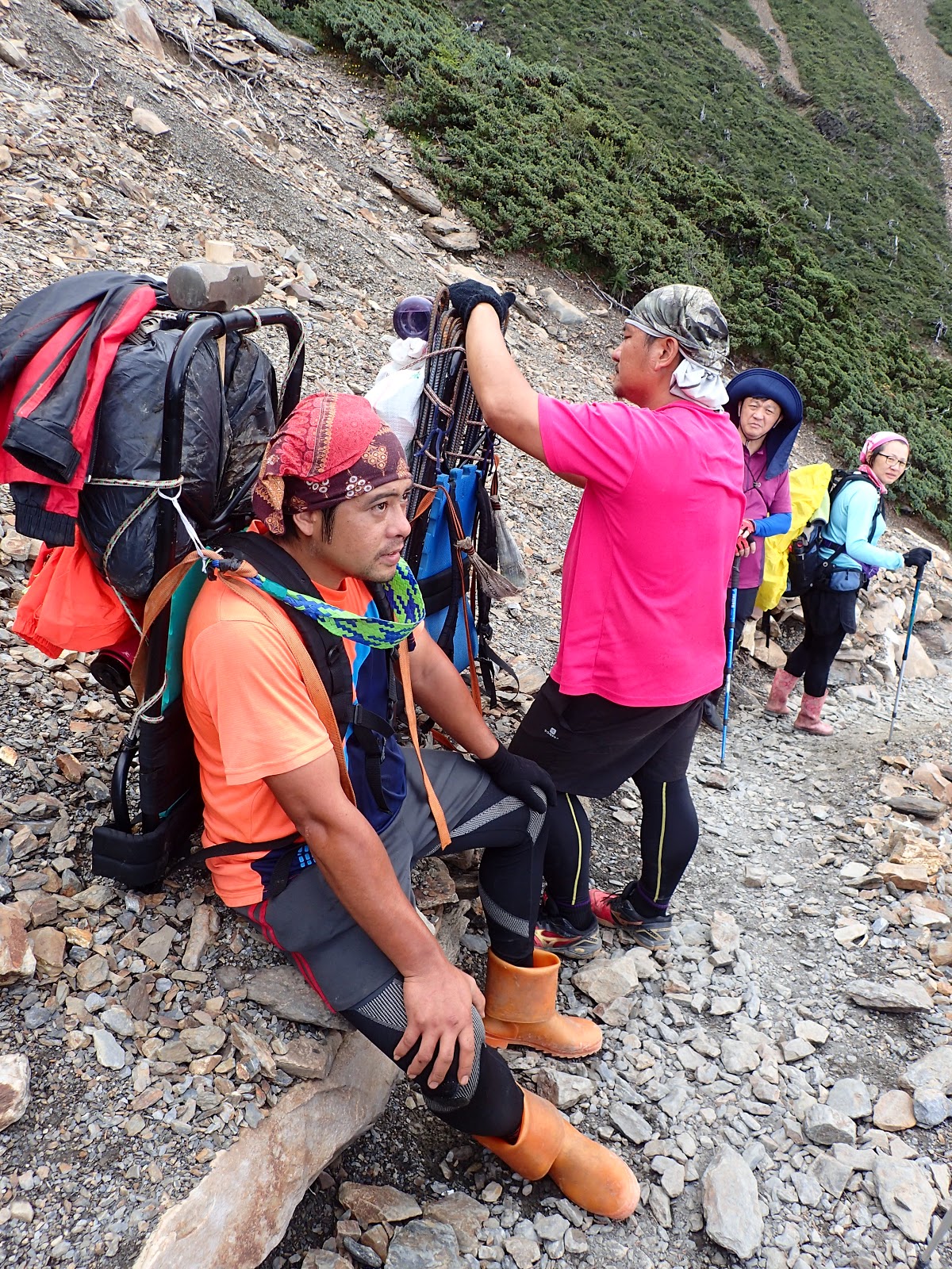 小燕說要帶我們再次登頂, 說早上跟他哥哥摸黑不小心走錯路, 往後面的坍方的碎石坡上去, 走一步退兩步, 很可怕
