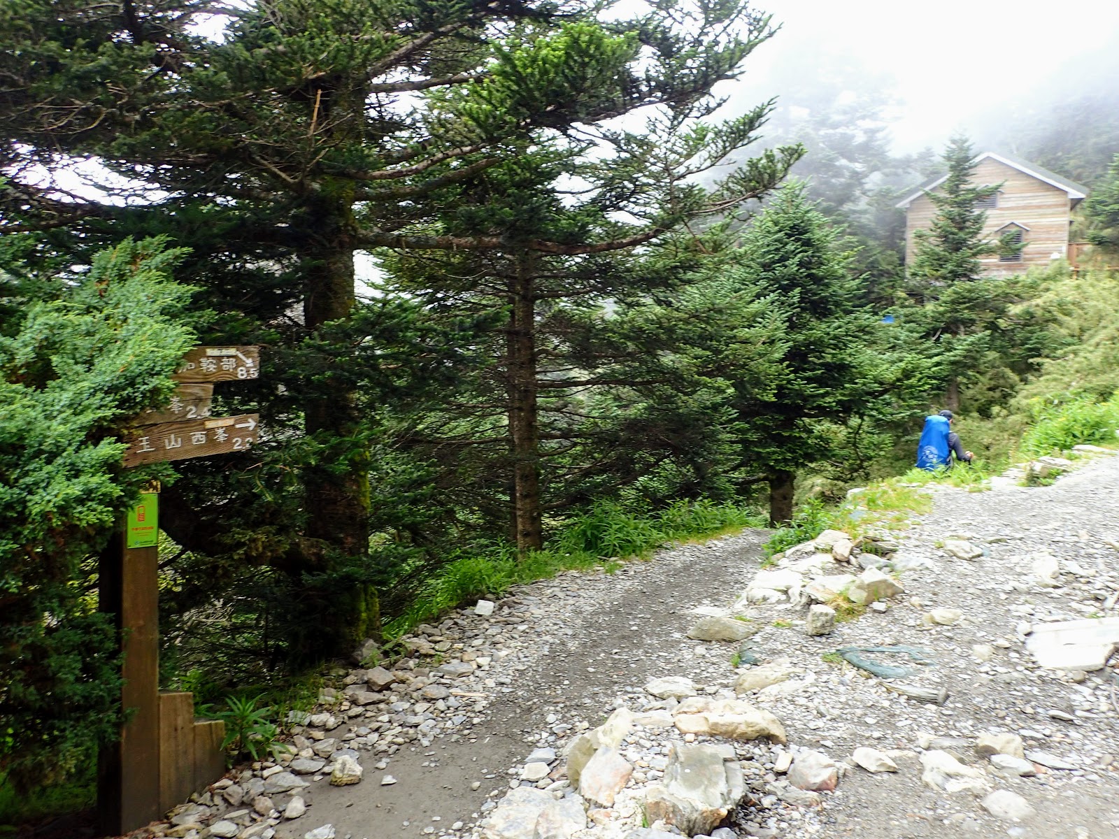 指示牌, 右往圓峰營地1.5K, 是攻玉山後四峰必走之路, 繼續往主峰1.7K走