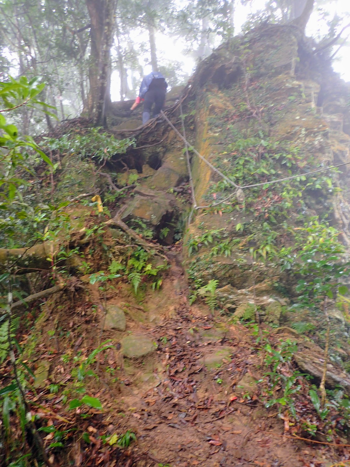 攀爬了一段硬陡的峭壁後上了6號