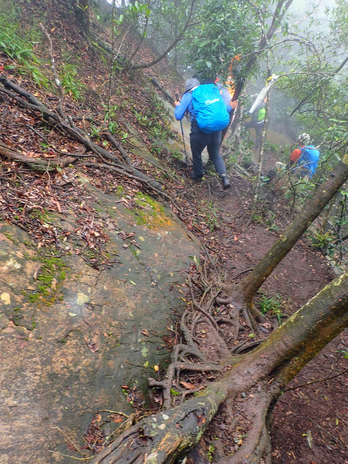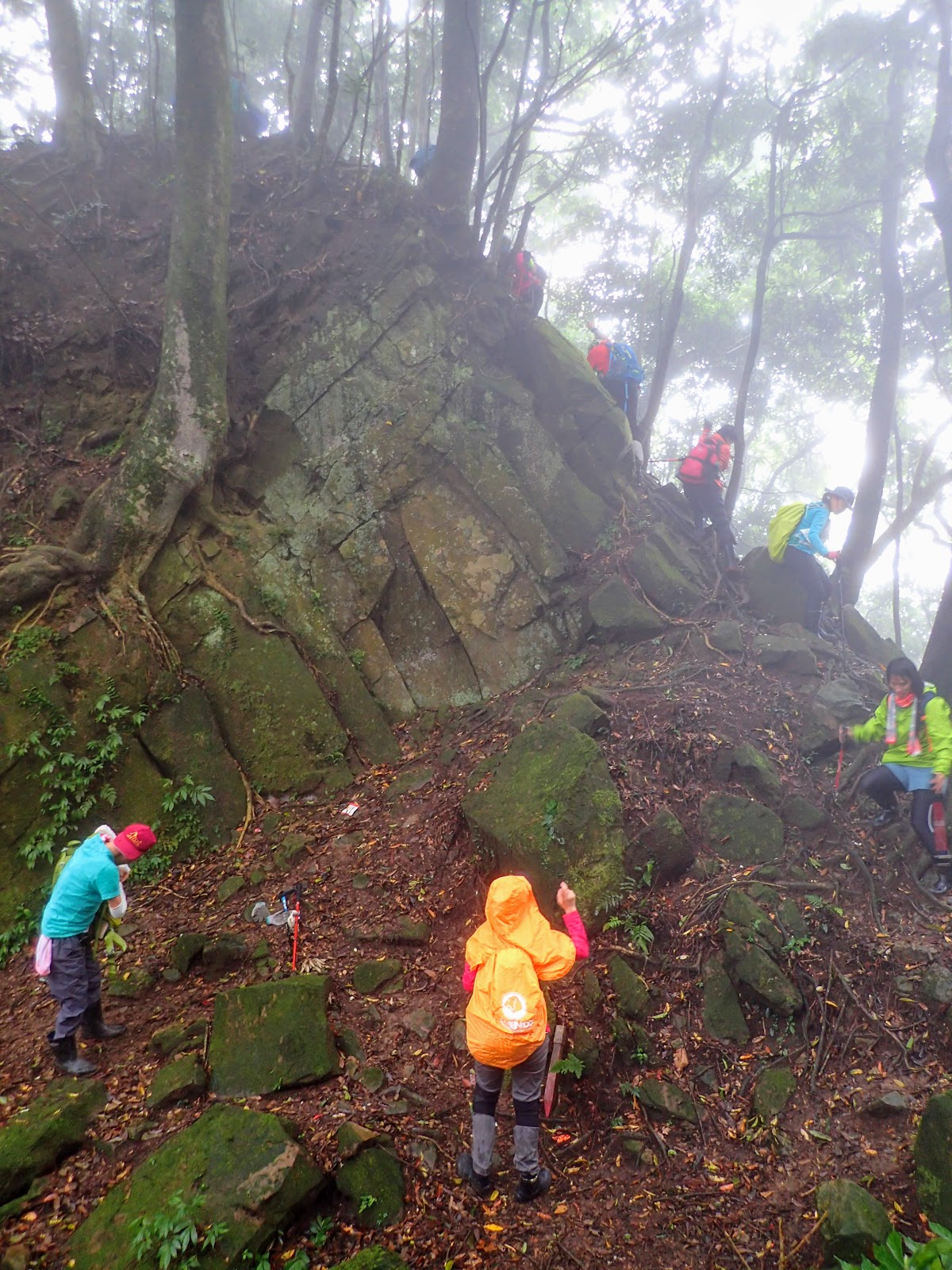 樹根盤纏+青苔+濕滑泥路, 考驗著我們