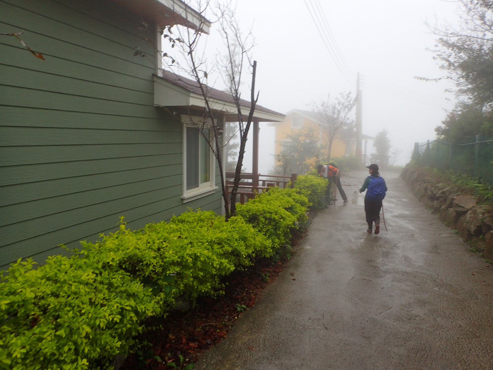4:24走到木屋旁, 全身已濕透, 等著搭接駁車, 奇怪, 神桌山呢? 都不曉得在哪錯過了...