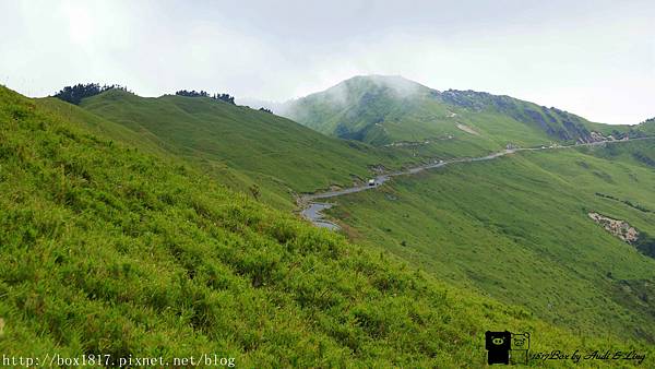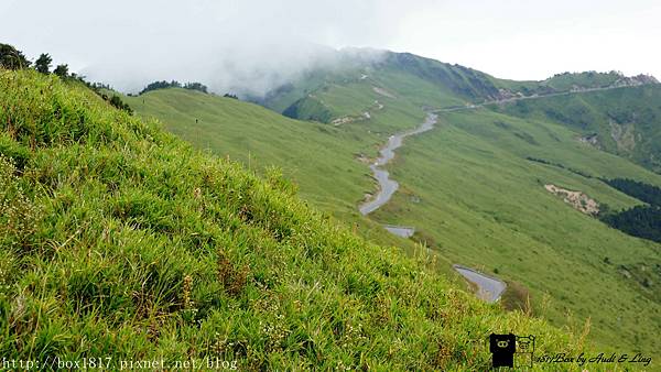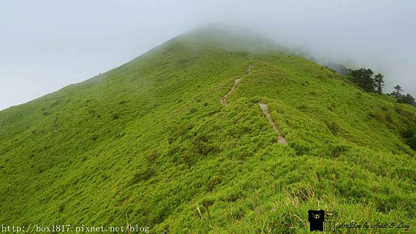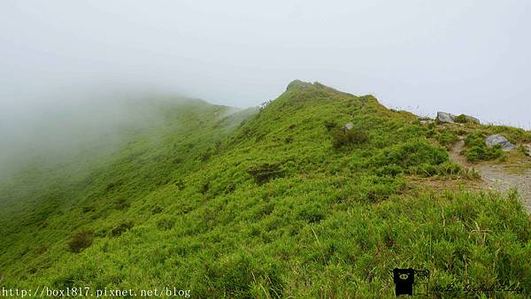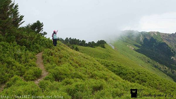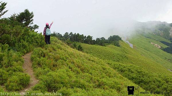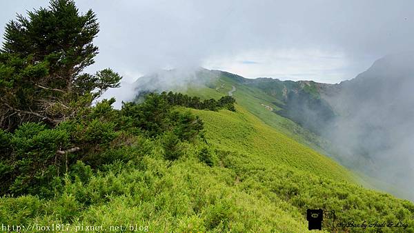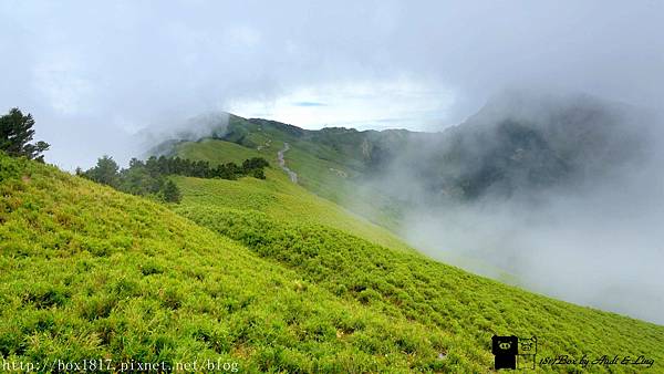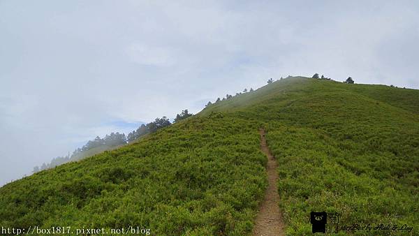 合歡南峰步道沿著稜線向南延伸,視野極佳,箭竹草坡綿延不絕,讓人想躺在草坡上日光浴,