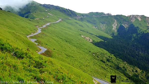 在合歡南峰步道上可欣賞合歡山S彎道之美,