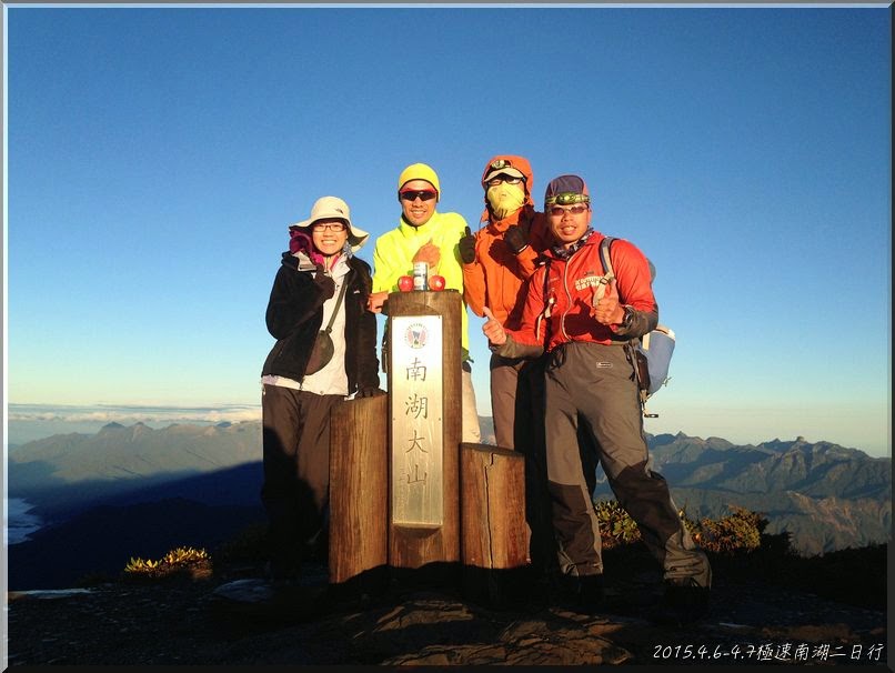 清明連假香港朋友來台灣玩,原本預計五天的登山假期頭三天安排了嘉明湖行,剩下的兩天要去哪呢?雪山去過了只好來挑戰南湖,這次帶了兩位香港朋友+外掛一名鐵人司機,雖然南湖來過許多次了,但挑戰兩天走完還真是頭一遭,一種極速健行(speed hiking)的概念,利用裝備的輕量化縮短原本較多天數的登山活動,大家都抱著興奮但忐忑的心情來試試看是否能順利完成~