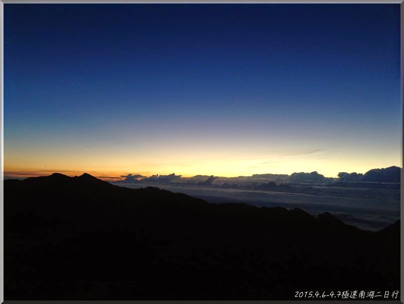 昨個兒晚上與大家協議,若是天氣不佳就決定棄攻南湖大山直接回家,雖然做了這個最壞的打算但大家還是抱著能攻頂的希望入睡,半夜兩點我起床看看外面,嚇!雲層厚厚....繼續矇頭睡大頭覺,沒想到三點多起來再看,雲霧不僅開了,星星月亮都超亮的,看來老天爺還是希望我們去攻頂,煮好熱水爬到上舖叫醒大家,沒想到接到的第一句話居然是『啊有確定要攻頂喔?』,跟大家說天氣超好都沒人相信==“