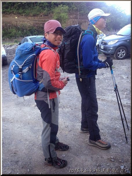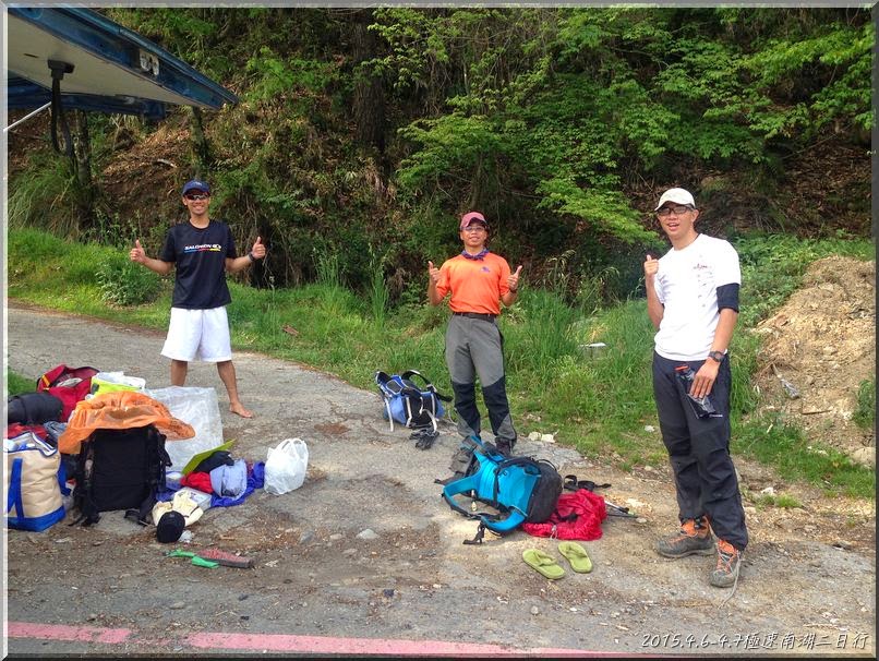 由於這次要一次踢進南湖山屋,特別交代隊員私裝務必能輕則輕,以往來台灣都背著超大超重背包的Ken這次也捨棄了大背包,首次背上中小包來挑戰這次的行程(這次外掛的鐵人司機依然背著一般重裝背包,不過人家有一日嘉明湖的實力就當作是壓速度的封印物吧XD)