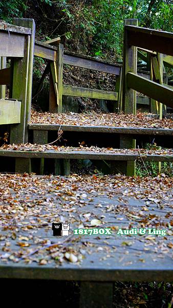 觀音山步道比較少人走,木棧道上到處都是落葉,