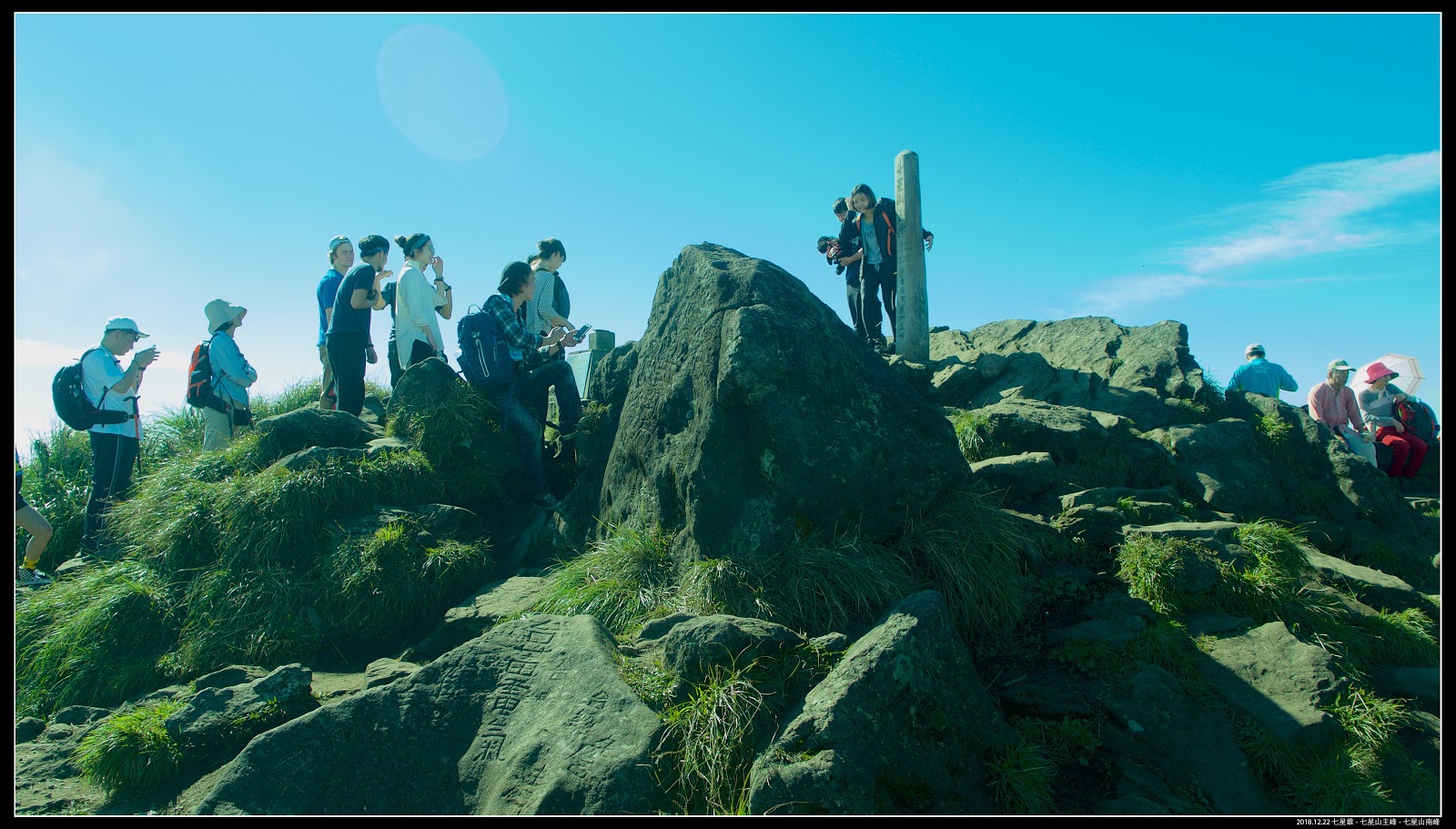 工作日的七星山主峰還是這麼多人,那根木牌拍照自動排隊,這一排外國旅客好像有三成。