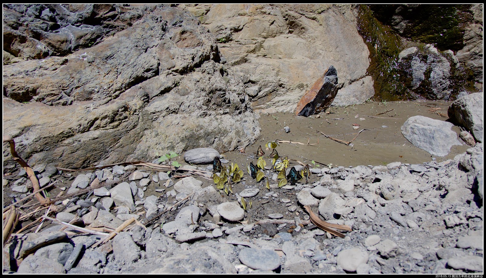 在一個小沙地上看到一大群蝴蝶聚集,沙地上大概有什麼野獸尿液(也或許是人的),充滿礦物質吸引蝴蝶聚集採食。