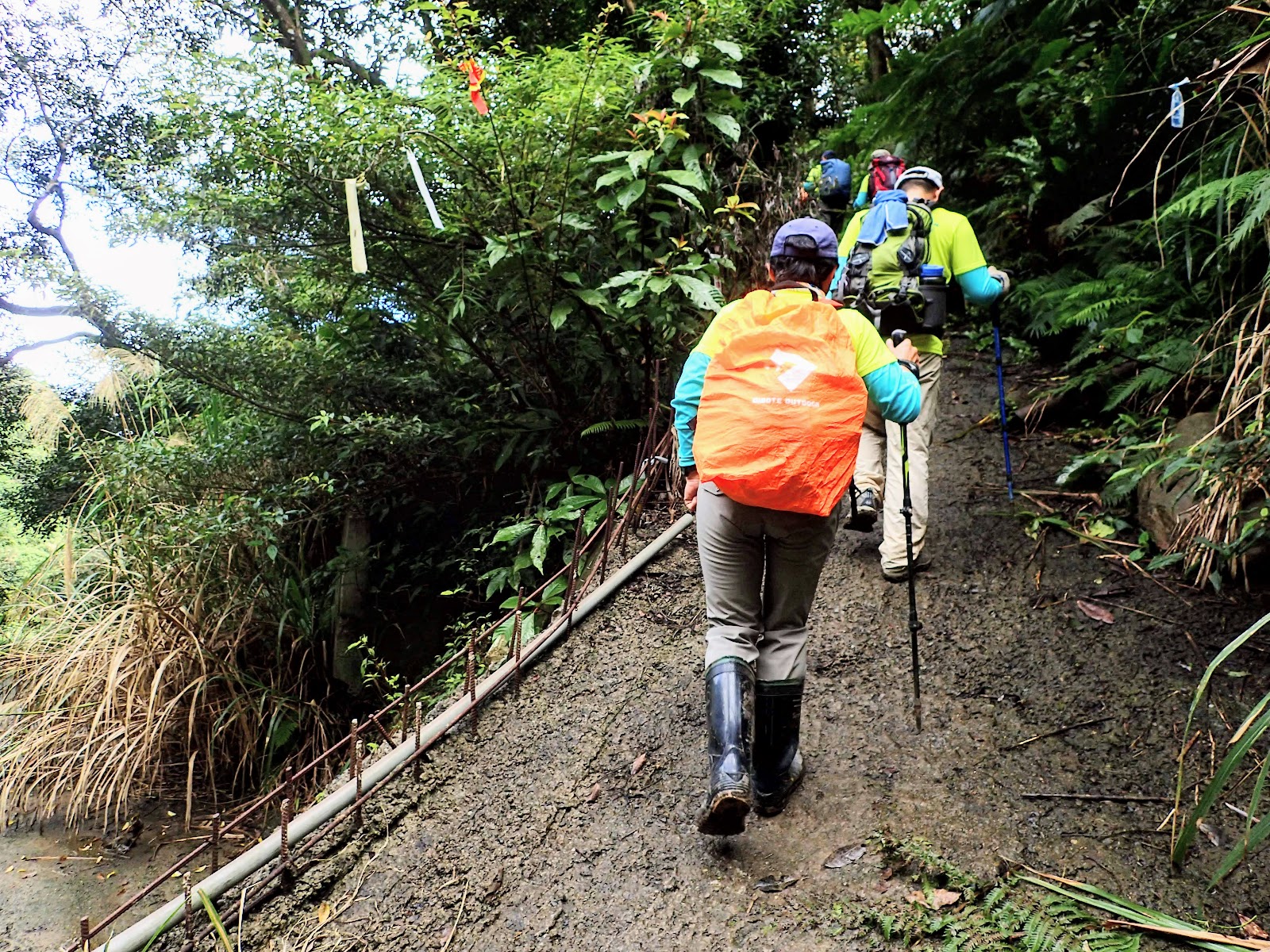 一路上地濕濘難行, 滑不溜丟, 後悔沒穿雨鞋來