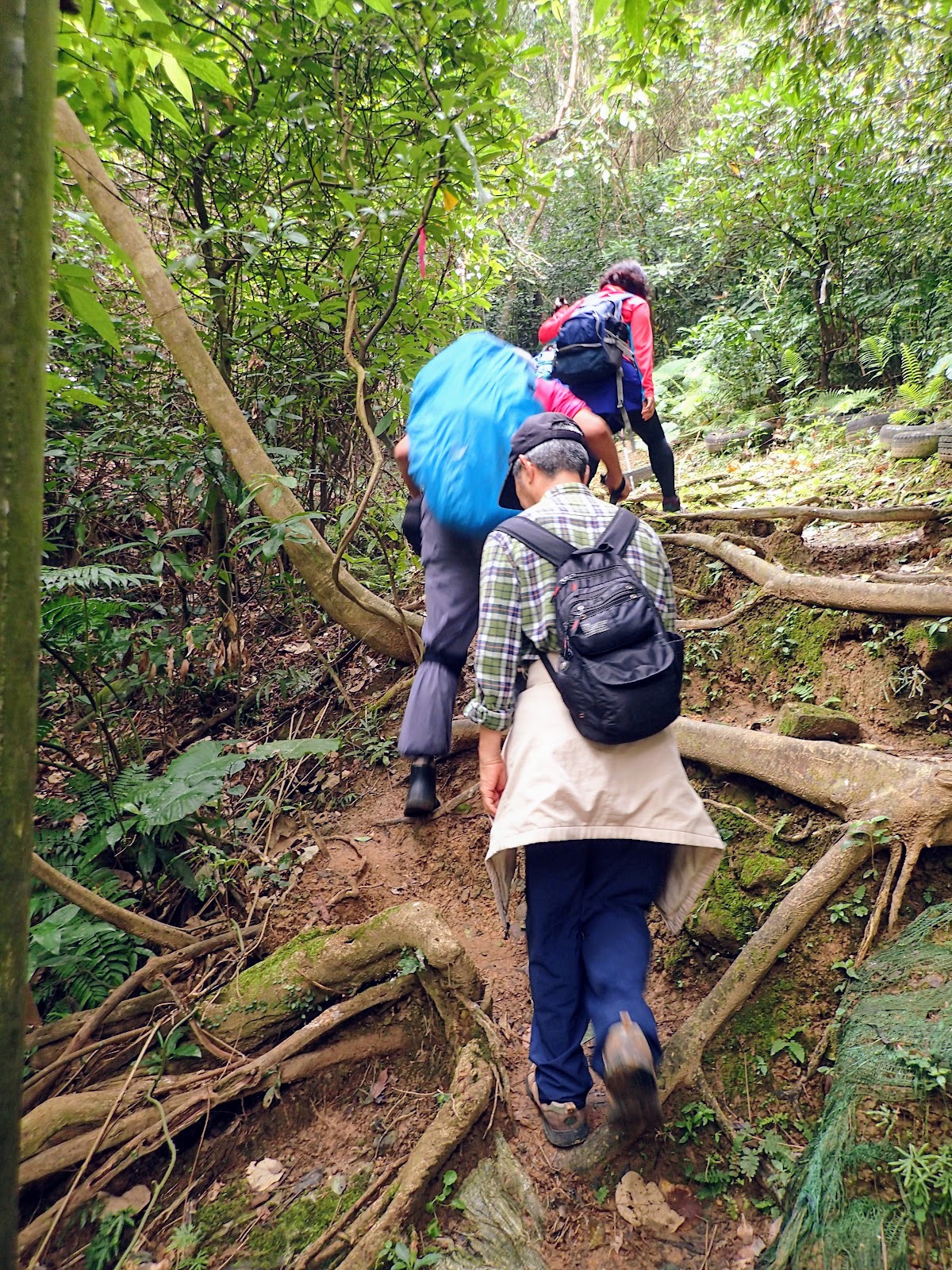 沿著石階往上爬, 少了琴妹, 缺了動力, 吼, 不是小山嗎? 怎麼這麼吃力啊, 汗流滿身...