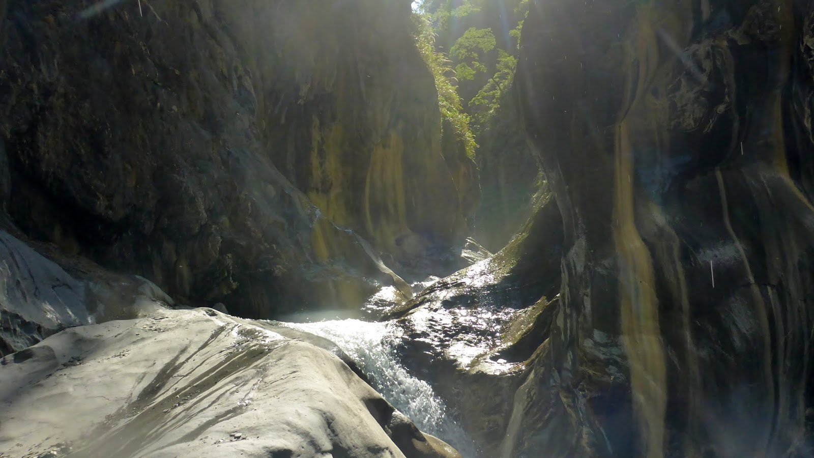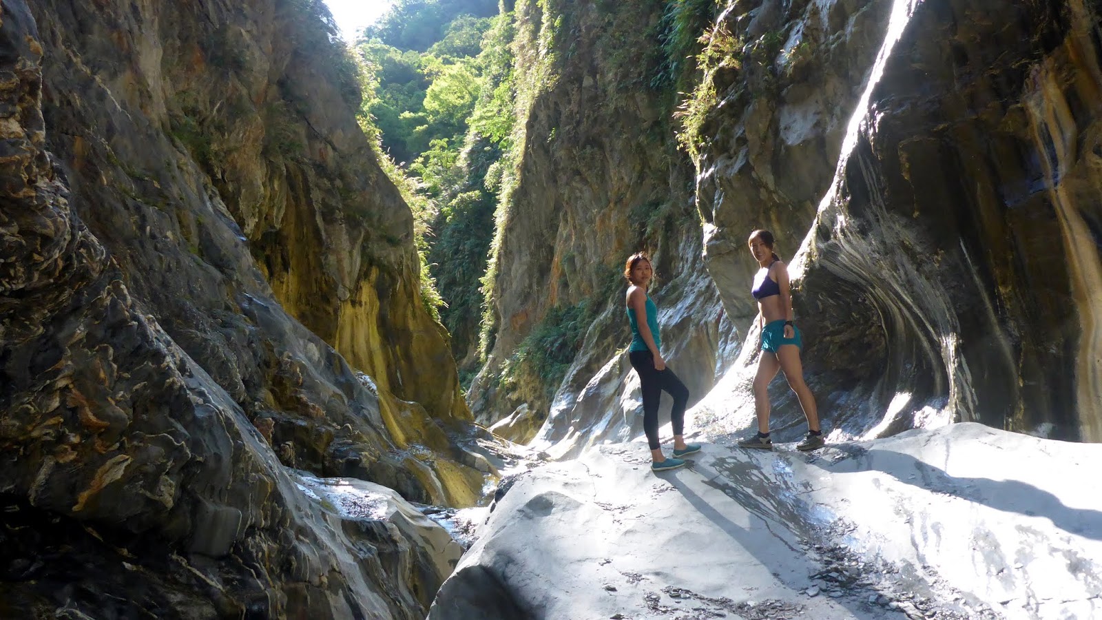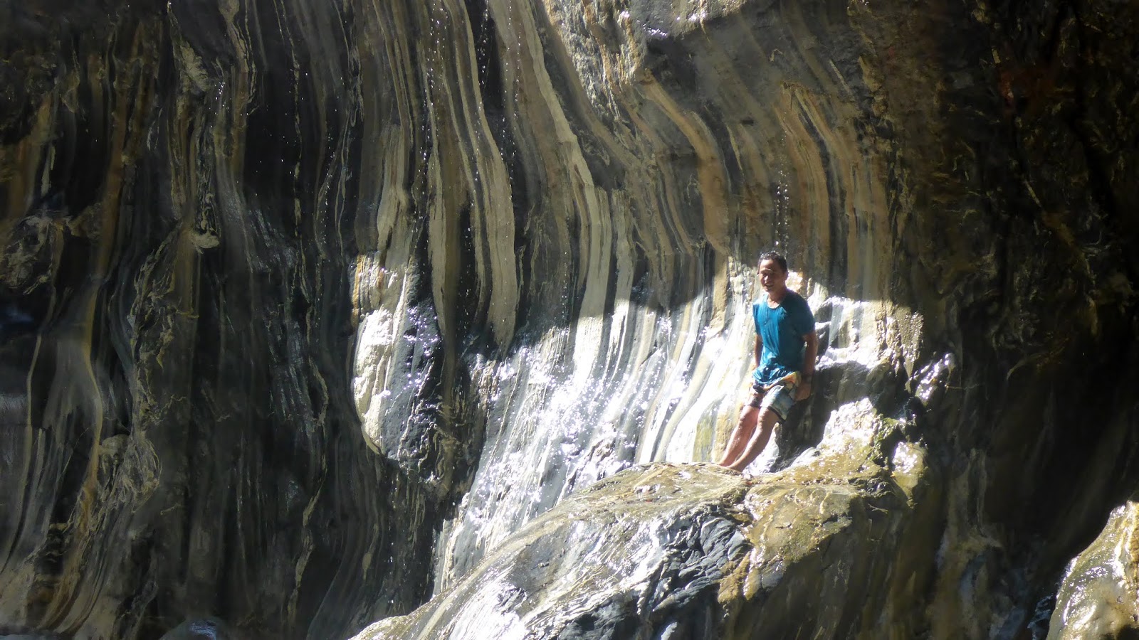 快到彩壁前有些路段較滑不好過的,都已有原住民打入岩釘和繩索來輔助通過,對我們來說不難,但相信有不少一般遊客光在這就能耗上一些時間。