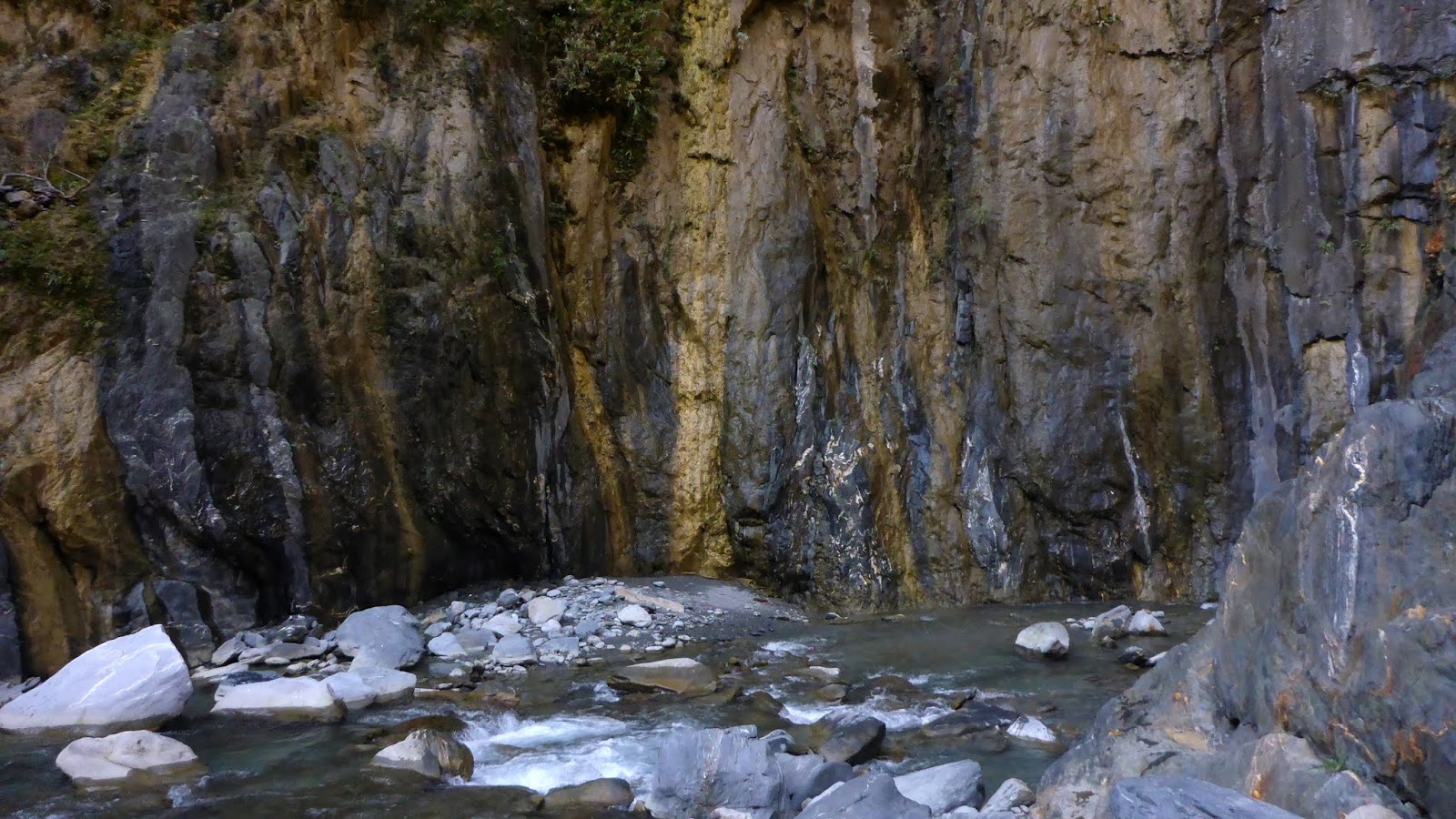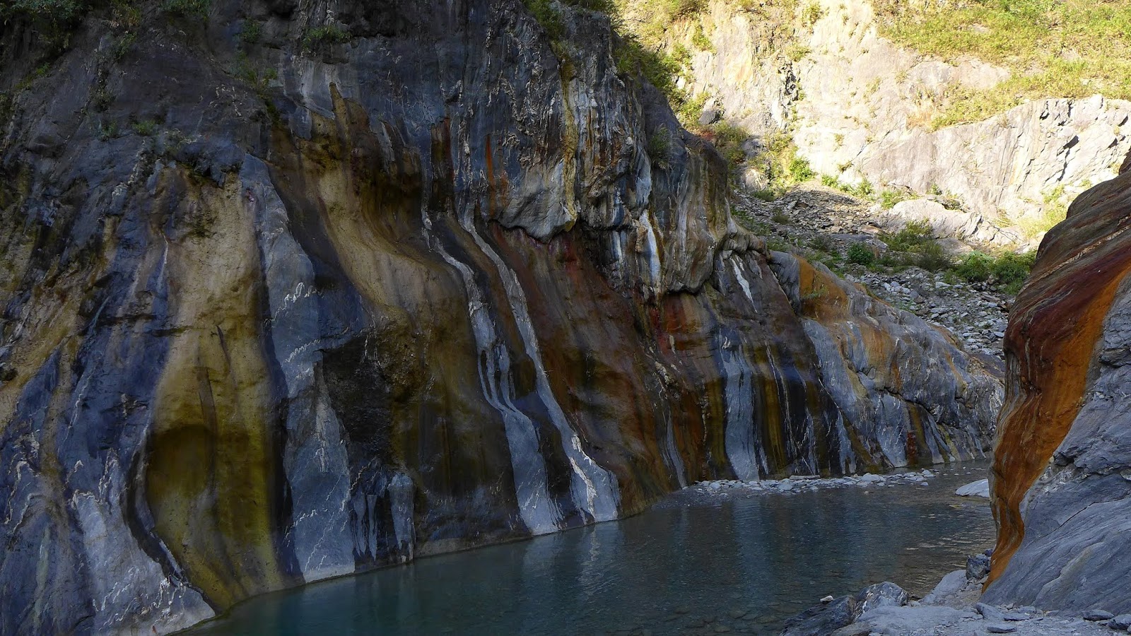 往裡頭一會就是黑白色的大彩壁,短短距離內,岩壁的顏色有如此大的變化,讓人嘆為觀止。
