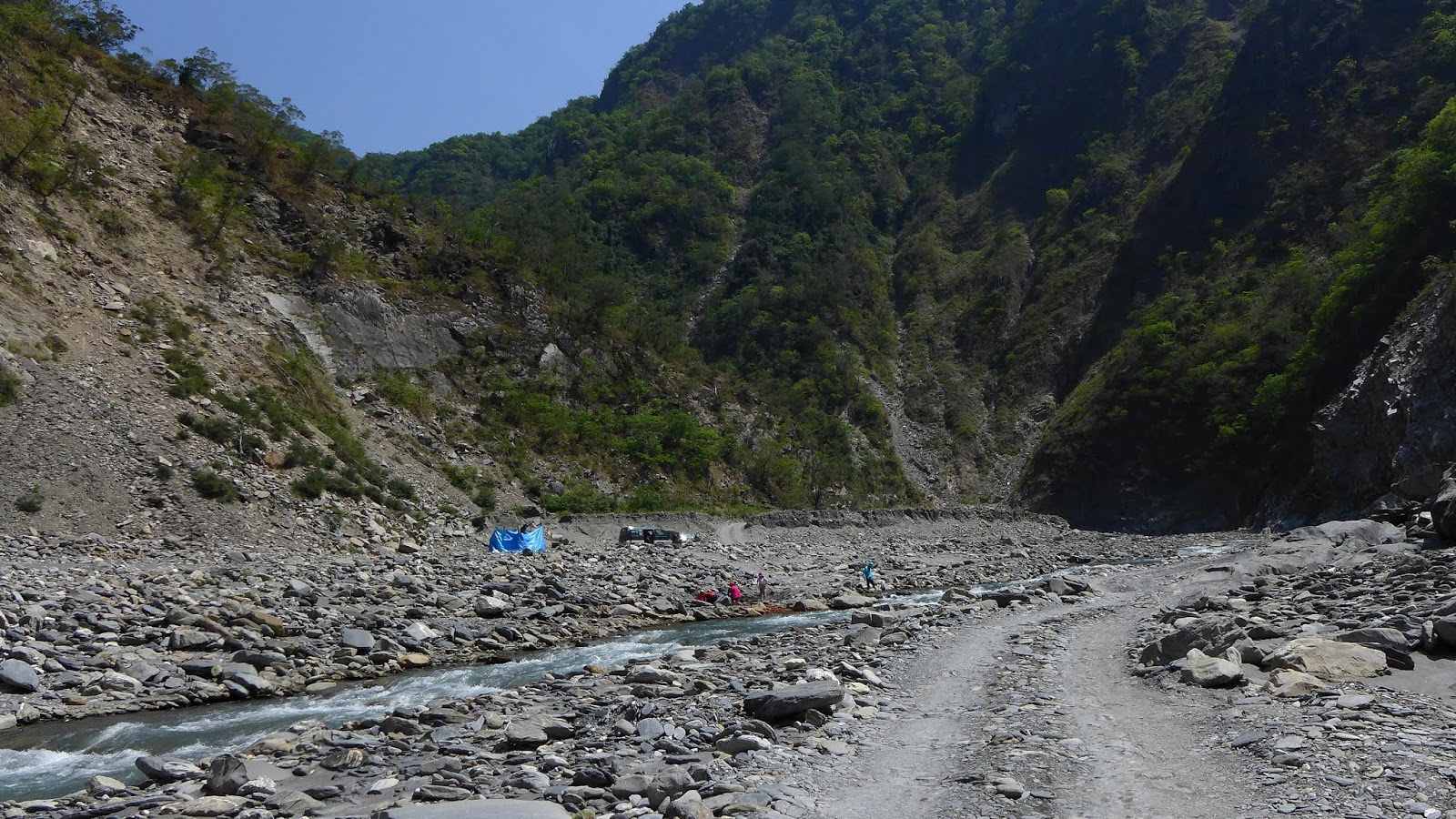 這邊遇到昨天的單車客,他們推進到這邊紮營,看GPS這時才累計到12K,這樣走到彩壁不到16K呀,單程只剩14K左右,也可能是現在有開發接駁車的道路,許多地方都截彎取直,這一來一往,足足省下4K的距離相當可觀。