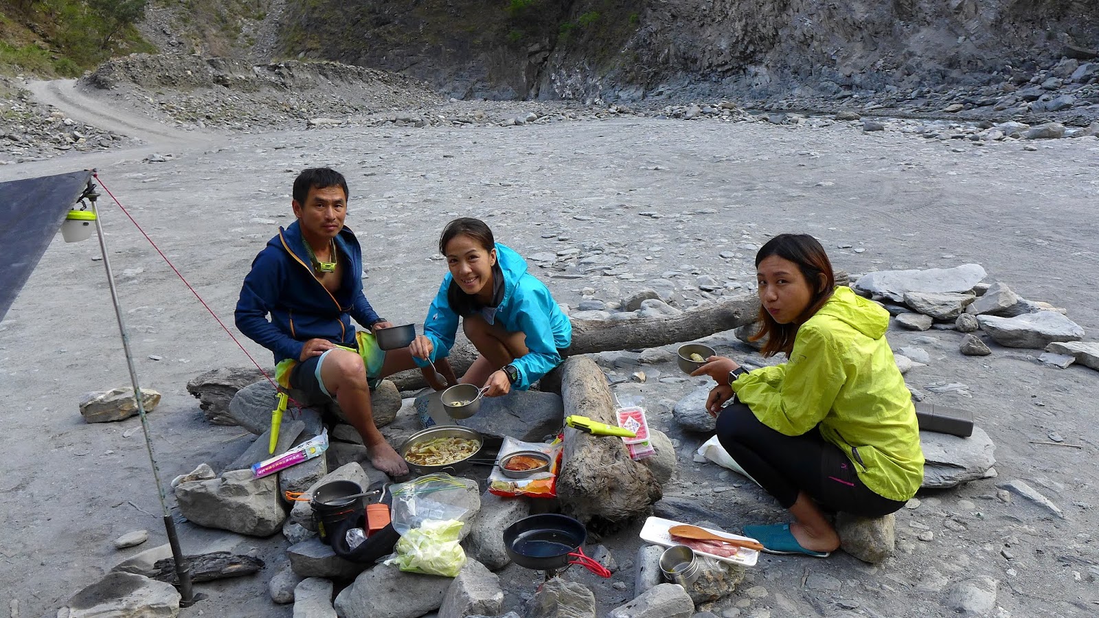 接駁車隊都離開了,後續另有3位單車客要往更深入的位置紮營,晚上也真的沒什麼事,天黑後再去泡一下溫泉聊天一下,8點多就早早入睡,話說河谷的風晚上完全變了一個方向,本來搭一個半開式的,被風吹到受不了,半夜起來改成A字帳,繼續睡。