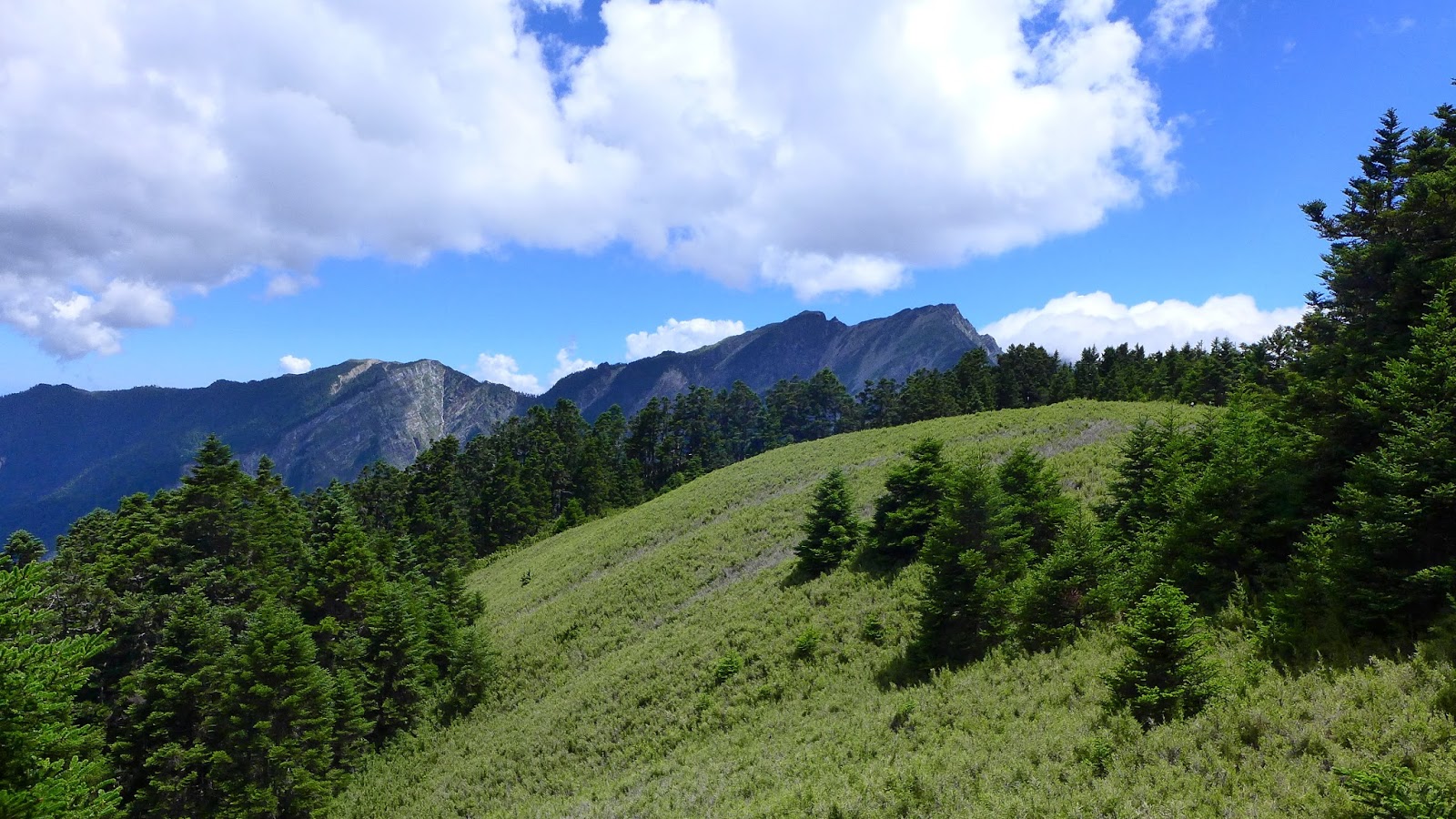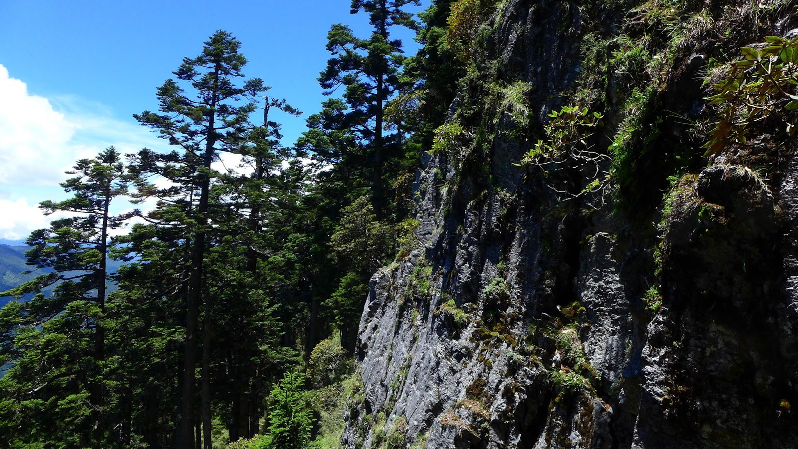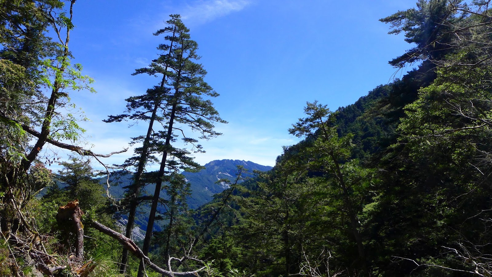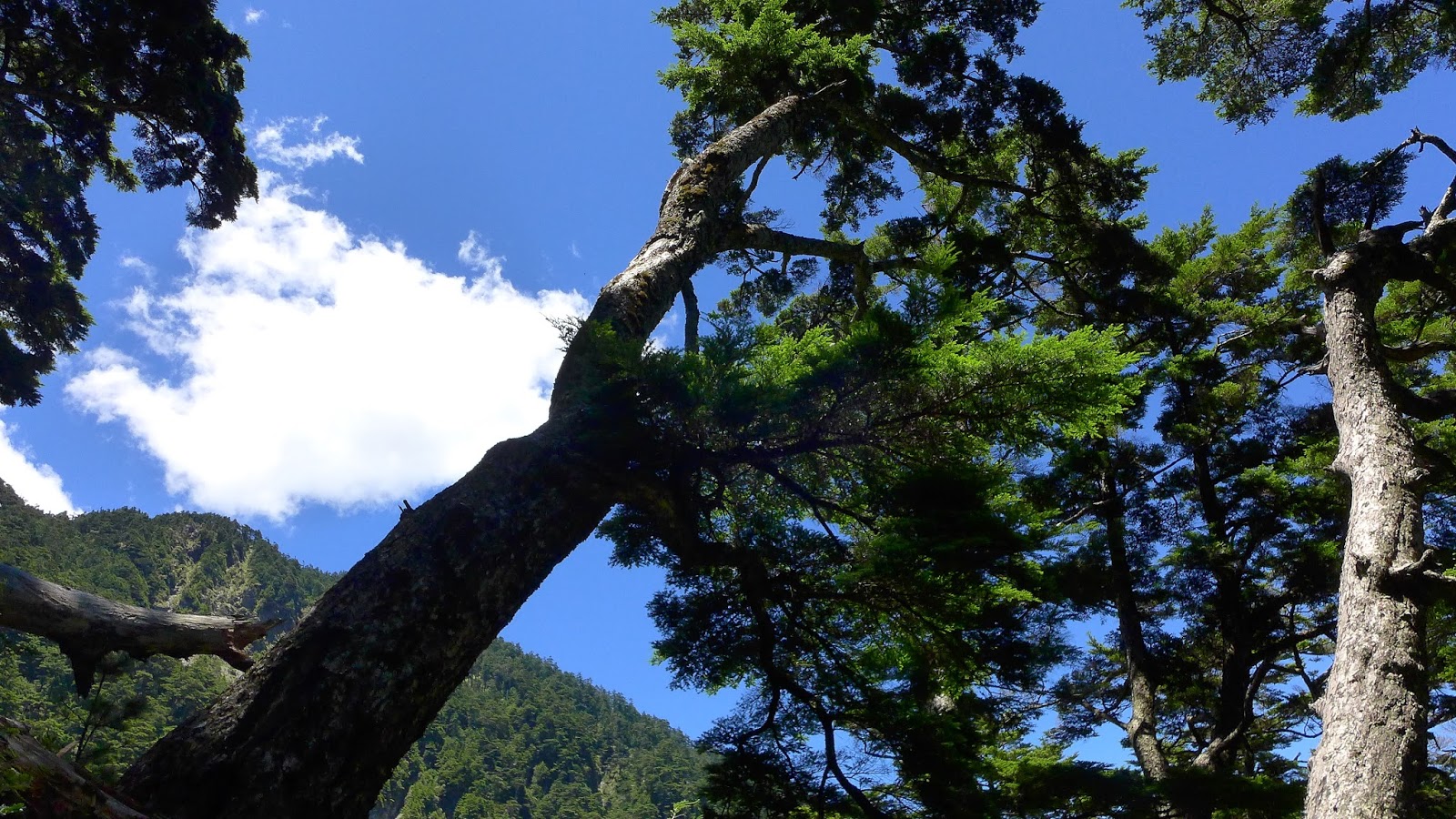 休息完繼續前進,有幾處森林缺口可以望望天空,後段進入巨大的鐵杉林內,持續不間斷的陡上等於在複習畢祿山一樣。