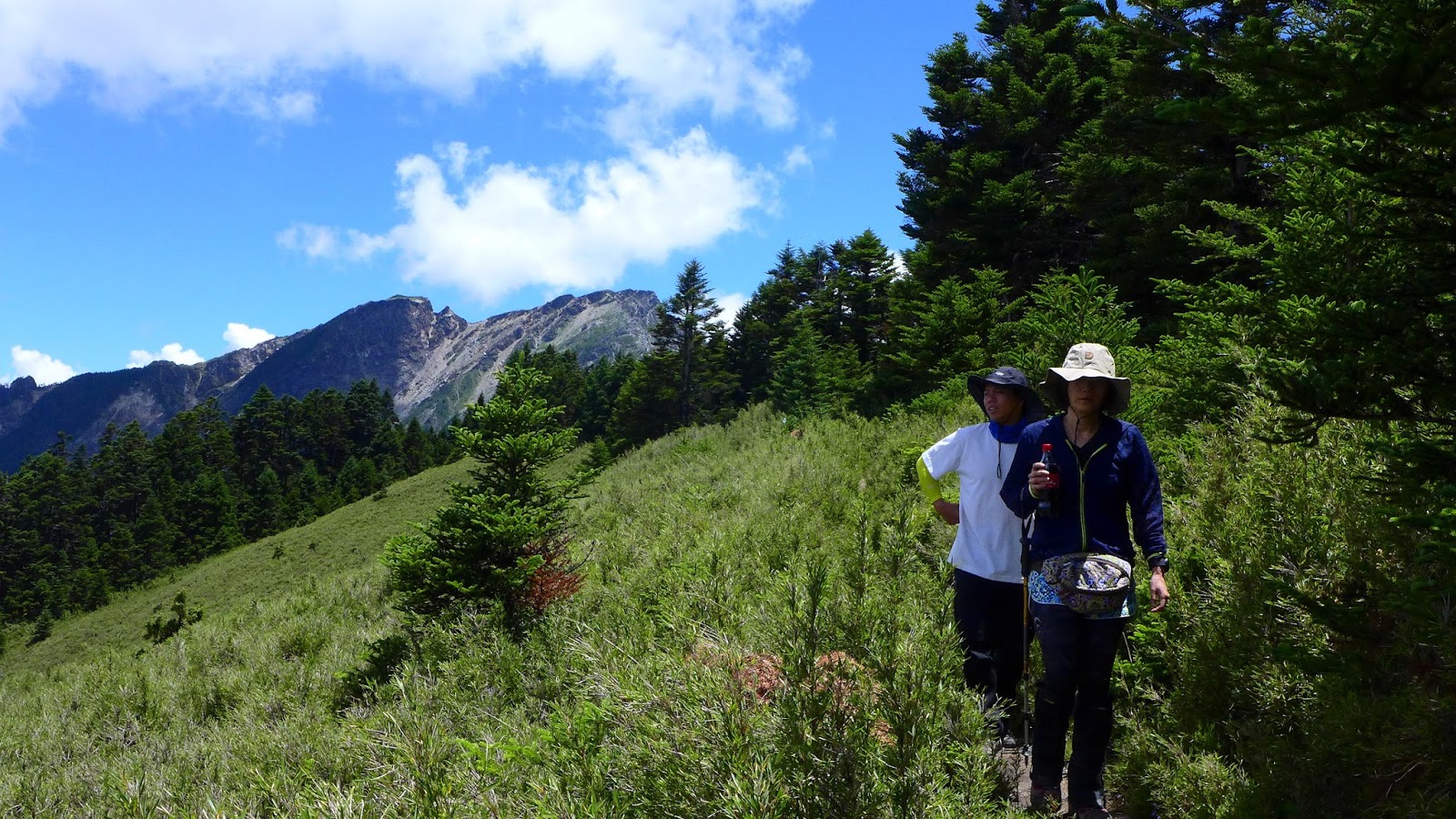 大夥至鐵線營地休息,下個休息點預計在合歡金礦營地,一開始先之字陡上,然後會有一大段平緩的路徑,中間經過的松針營地是還不錯的營地,如果要紮營的話,個人喜歡松針營地多過合歡金礦營地。