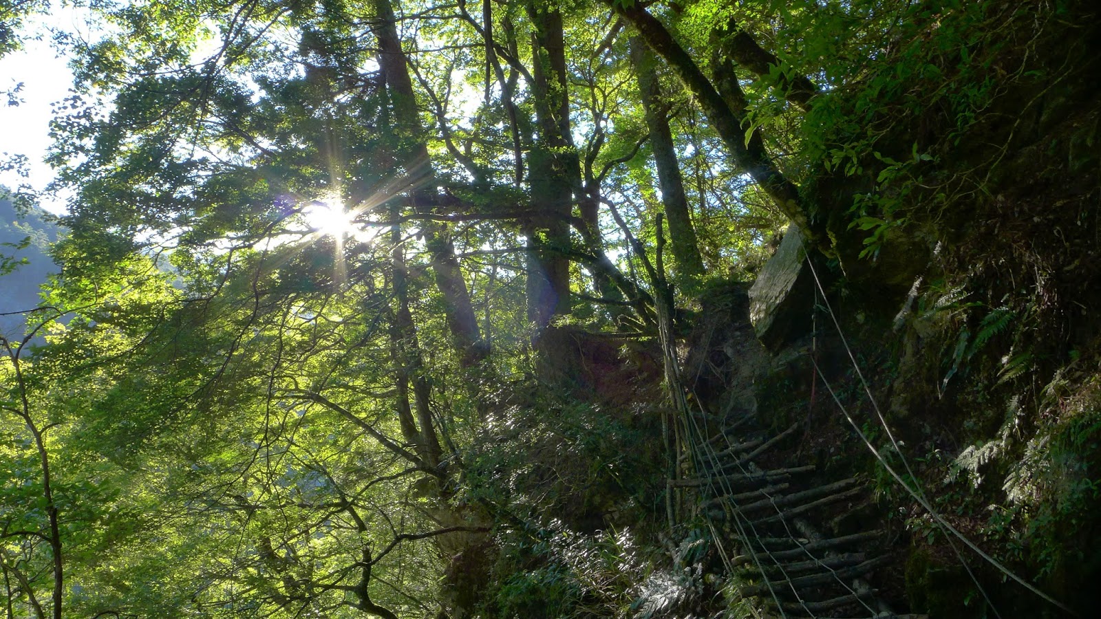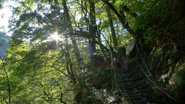 第一次過溪後,沿途繼續陡下,有幾處崖壁地型較不好走,另有一處的木梯已經有點不太穩,通過時需多加留意腳步。