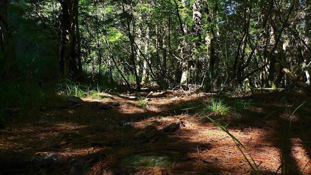 (網路上其實有山友開發的屏風山新路徑,就在抵達松針營地之前就要左轉並過溪後,開始一路陡上到稜線,但路途縮短非常多,沿途芒草和箭竹非常多,資訊也還不夠充足,是很標準的中級山路況,要走新路線上屏風山建議要結伴並攜帶GPS,不然還是走舊路徑,至少路徑清楚較安全。)