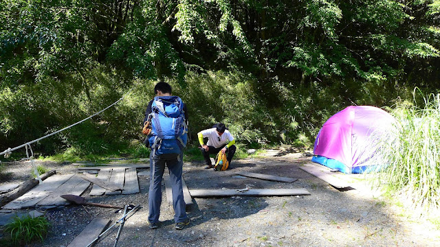 過去開採金礦留下來的營地,以往爬屏風山也是從松雪樓下切溪谷再爬上,因金礦開採才有了大禹嶺通過來的路線,不過這裡日照直曬外,蒼蠅也特多,還是前面松針營地來得舒服。