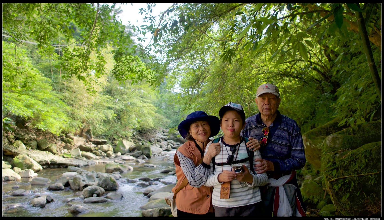 很快再度回到溪邊,這裡找一片岸邊岩石區,讓父母休息,順邊品嚐一下剛剛買的王氏豆腐的豆漿。