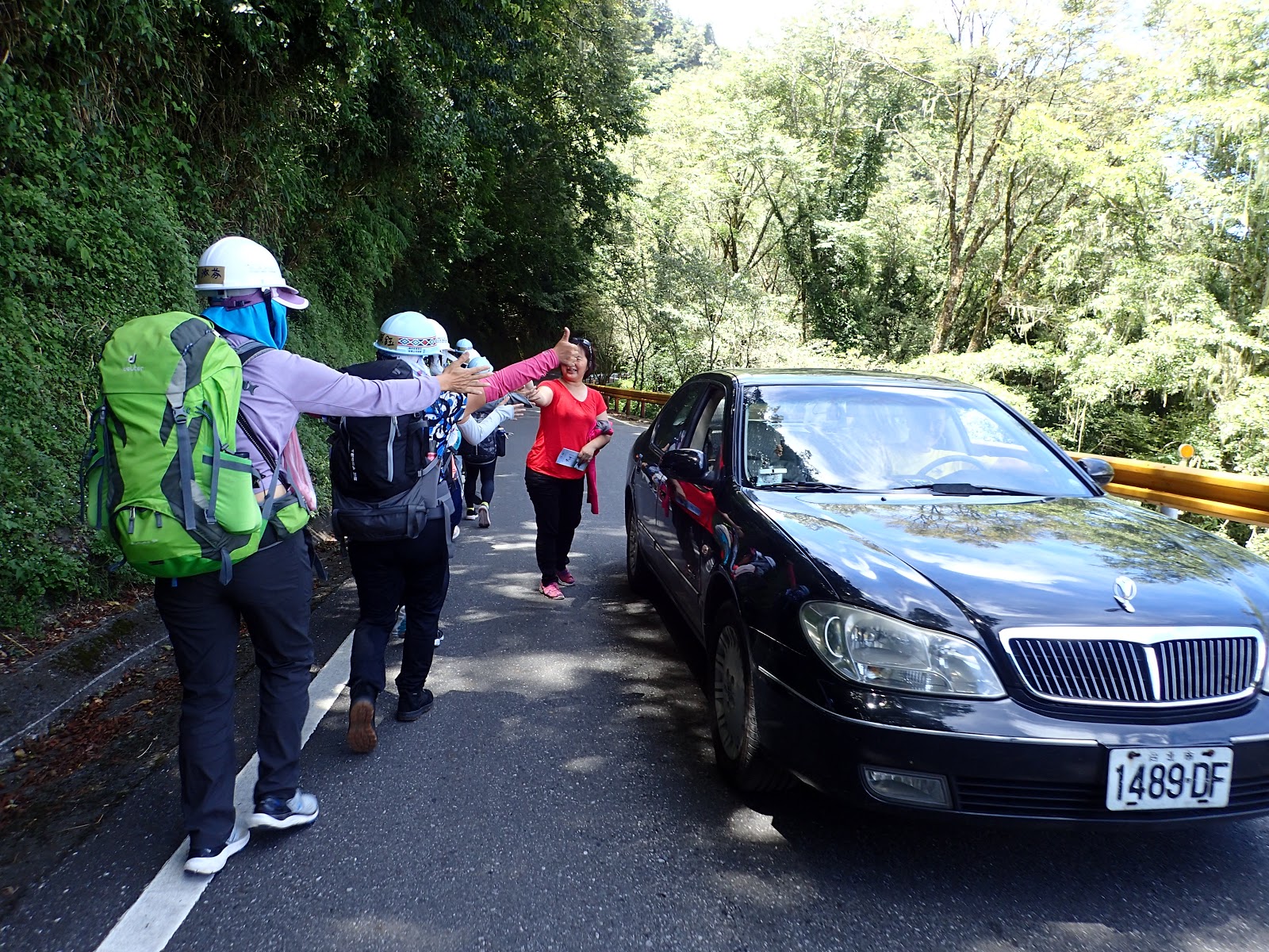 沿途車子經過, 遇到有人打氣, 我們則高喊下來走