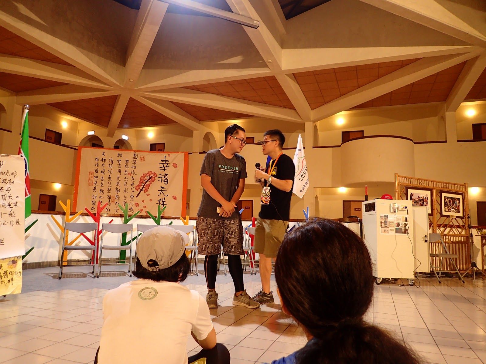 先用過晚餐, 行進中吃掉4塊麵包餐點, 感覺這餐米飯菜色特別的香甜好吃, 胃口大開, 然後到通舖進行晚會, 教唱, 感性時間...整個晚上, 熱鬧滾滾...偷偷溜去洗澡, 後來才知道錯過了驚彩鏡頭...