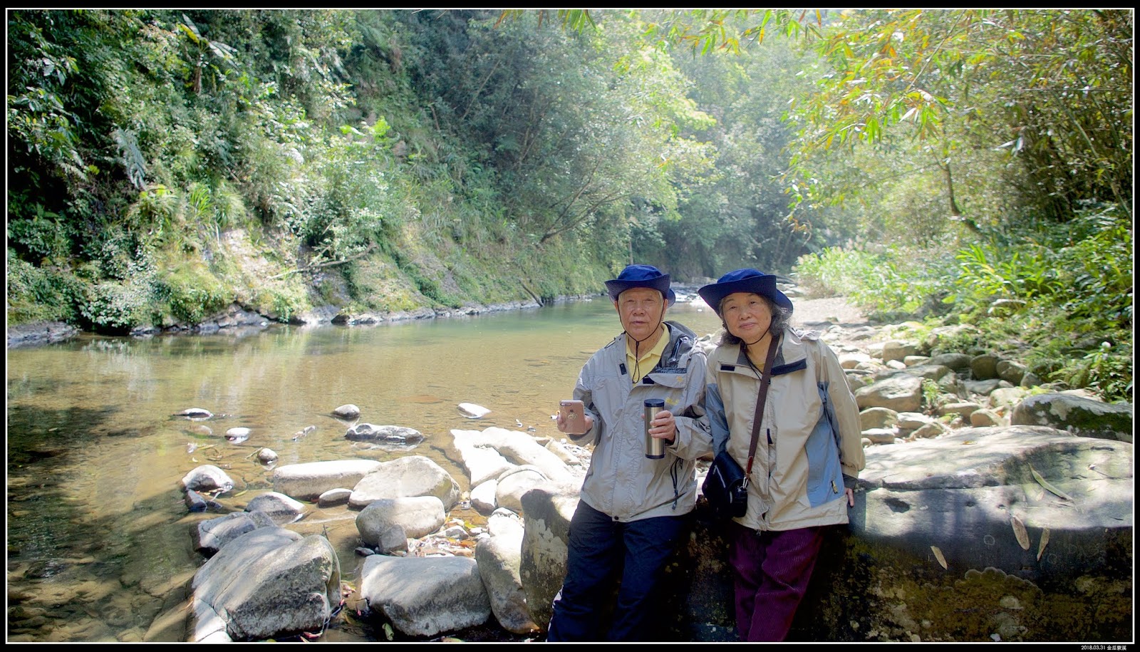 (遠方溪邊有人在玩水,顯然有路徑可以下切,不過,帶著父母,不太方便去冒險。)