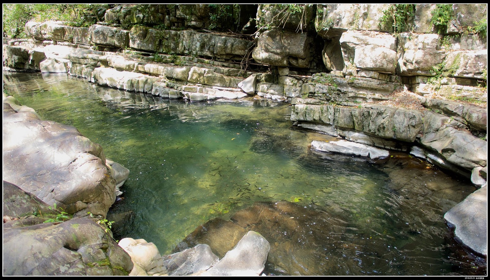 這裡有一個小缺口可以走到溪邊,前面瀑布的下游,就是一個深潭,看起來會是很多人喜歡游泳的水域,只是我個人對於溪流的知識,用目視無法判斷這水有多深?也不知道下面是否有暗流?