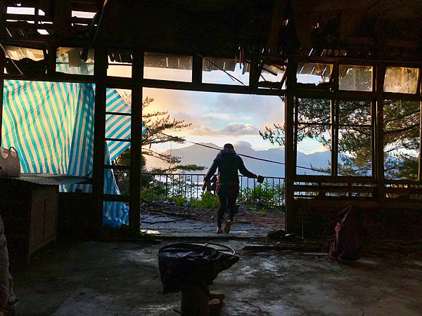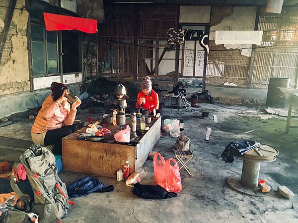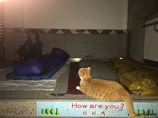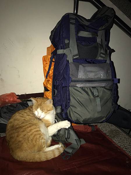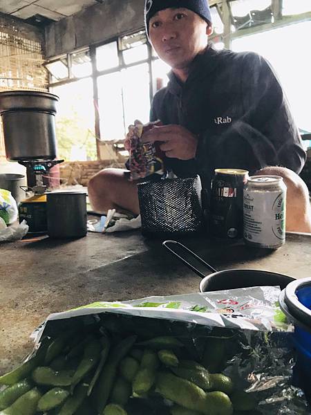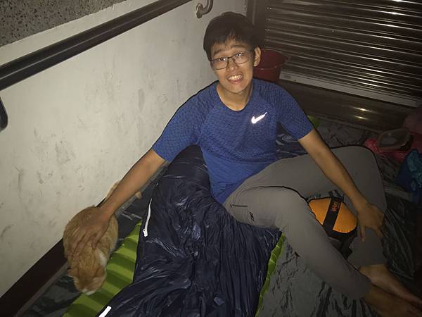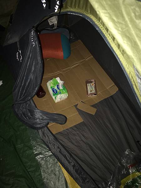 ?我必須好好介紹江江:永遠短褲、怕熱的男人,原就計畫不帶睡袋上山,想不到竟然連睡墊都一同沒帶、忘記了,於是這兩晚都與地利國小撿來的紙箱共眠