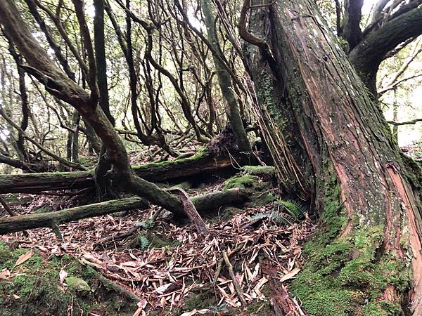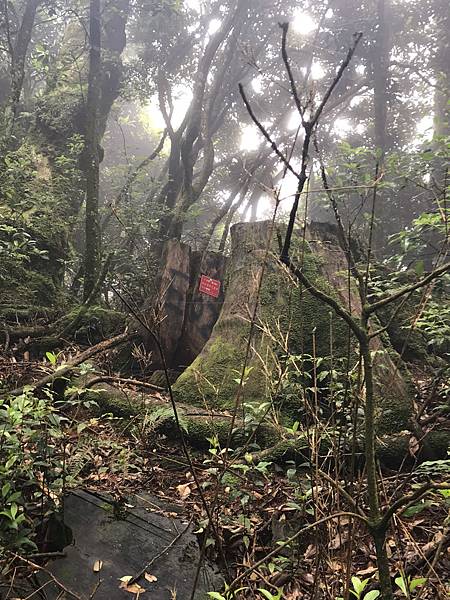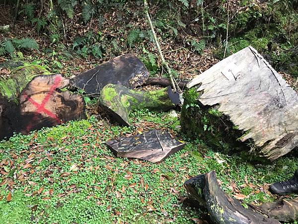 ?下面就是人倫北支線,3月時和初訪的夥伴們最後因懶懶上治茆,便跟著地瓜老師到處去找野生杜鵑,最後在這盜伐木旁有找到疑似的一株,可惜那時大家帶的3c都無法拍清楚