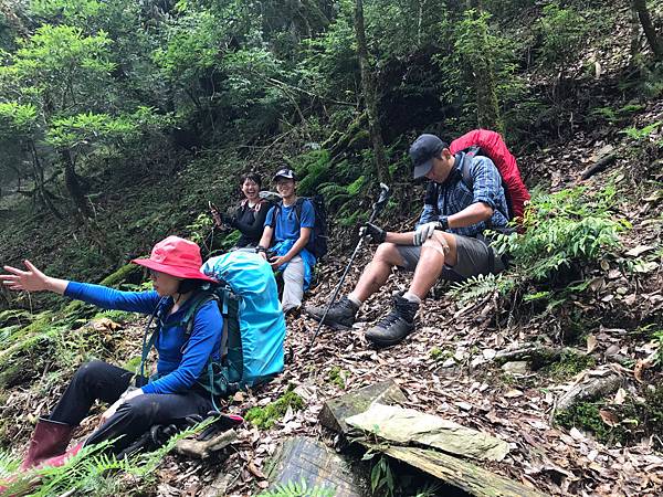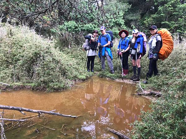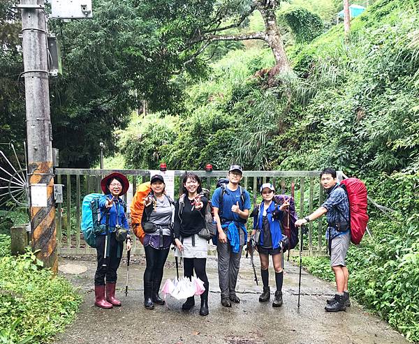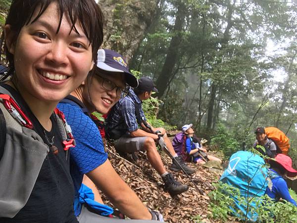 ?成員:Hande憨弟、100k的蚊子男馬軍、永遠短褲且沒帶睡墊的男人江江、無袖短褲的飆仔瑜文、第二次使用xtherm睡墊就被箭竹刺破的奇文姐、沒有平日可以爬山的小豬姐、(遺憾缺席的紅豆泥鴻妮)