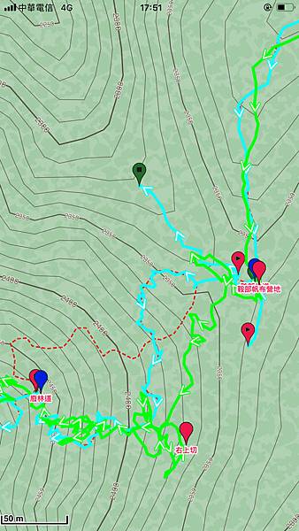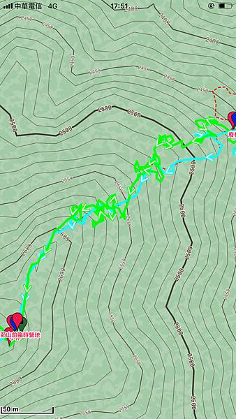 ?腰繞過頭,沒在盜伐區時上稜線(綠線為我們)