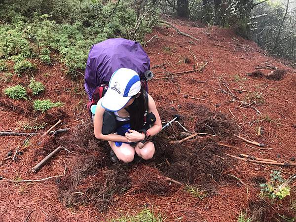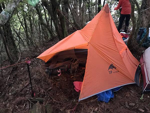 ?還有這次同為跟江江一樣、沒有睡墊的奇文姐XDD:因為在治茆前營地,奇文姐紮的區塊的箭竹太過厲害,便連同地布、帳篷、睡墊一起穿破了