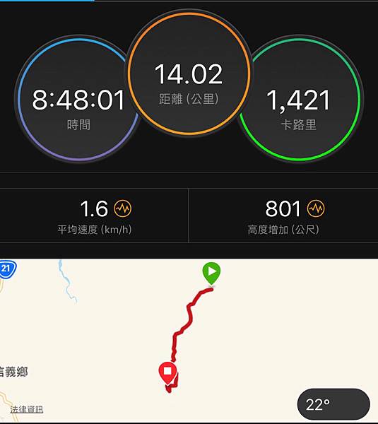 我們因走到腰繞路、兵分六路陡上切、走超過預計營地:4.5?