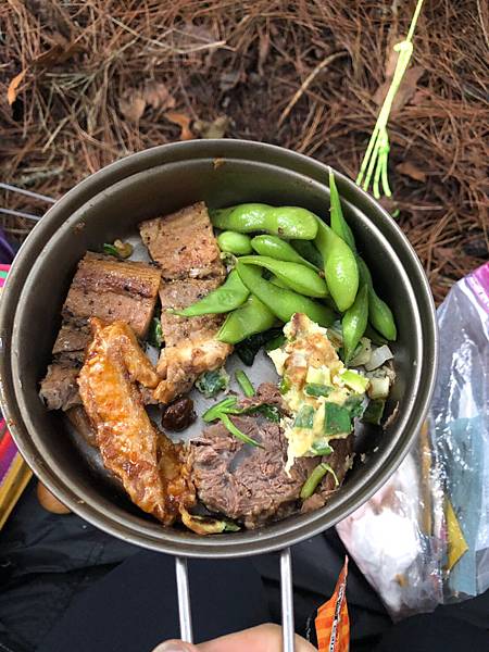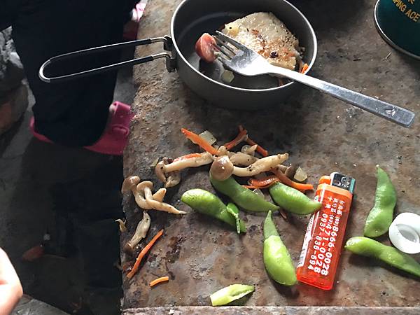 ?雖然從黑黑谷上硬陡還要背水,但隊員們(除了江江)都很棒也很會煮:每人各準備兩道菜,兩晚分享著吃,餐餐好料,都不用煮主餐了