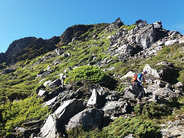 他一下就上去了,一開始我選擇直上結果太陡,跟著他從旁邊上就好多了,但下來還是要小心就4