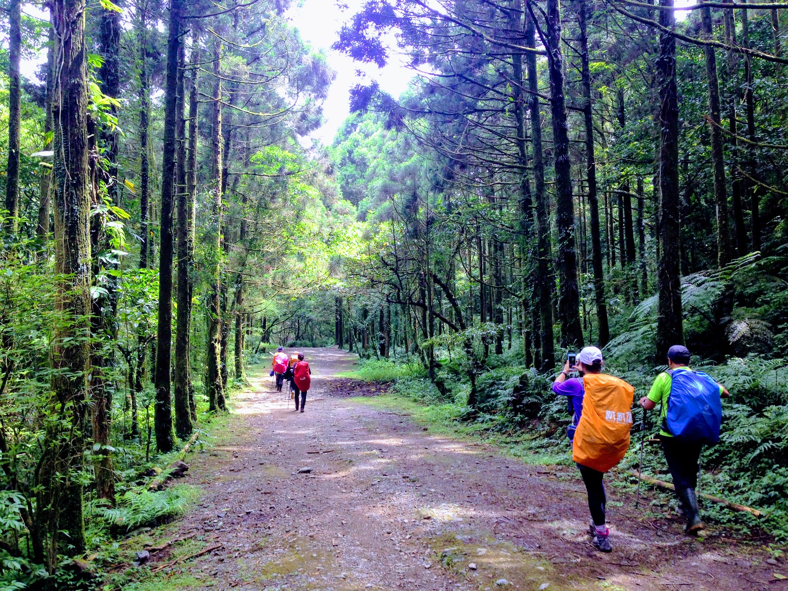 寬敞的林道,兩旁是高聳的柳杉人工林,涼爽好走,是一條小孩老人都能走的無障礙路線。
