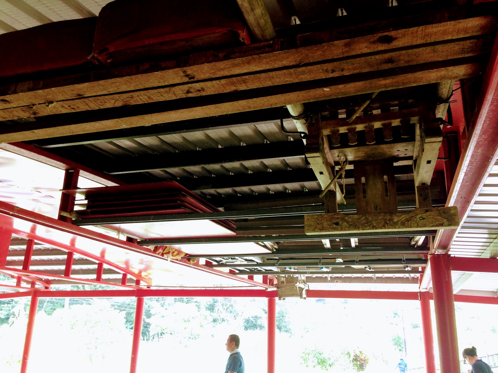 | 看起來搖搖晃晃還用筆筒樹當支柱的神祕小屋骨架,功能未知。 |