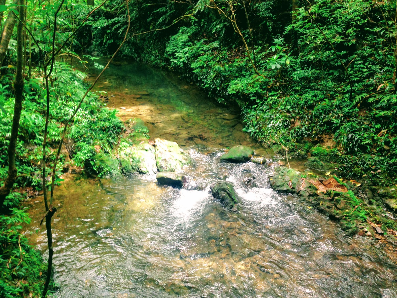 這群沿著溪畔步行的人,看著溪流都露出嚮往的表情,悶熱的天裡實在好想把全身泡進去。