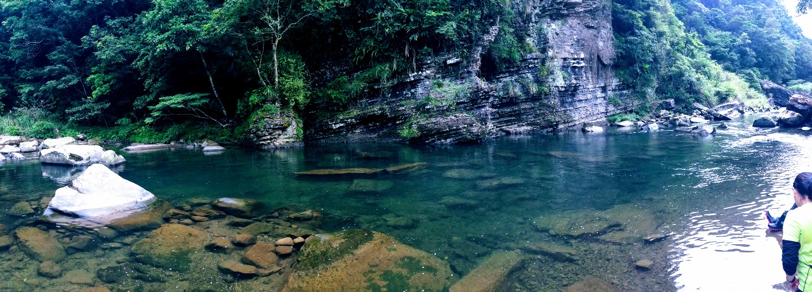 一路上延著被溪水切開的河谷行走,急促的流水間時不時出現一灣平靜的水潭,所以才叫做灣潭古道吧?