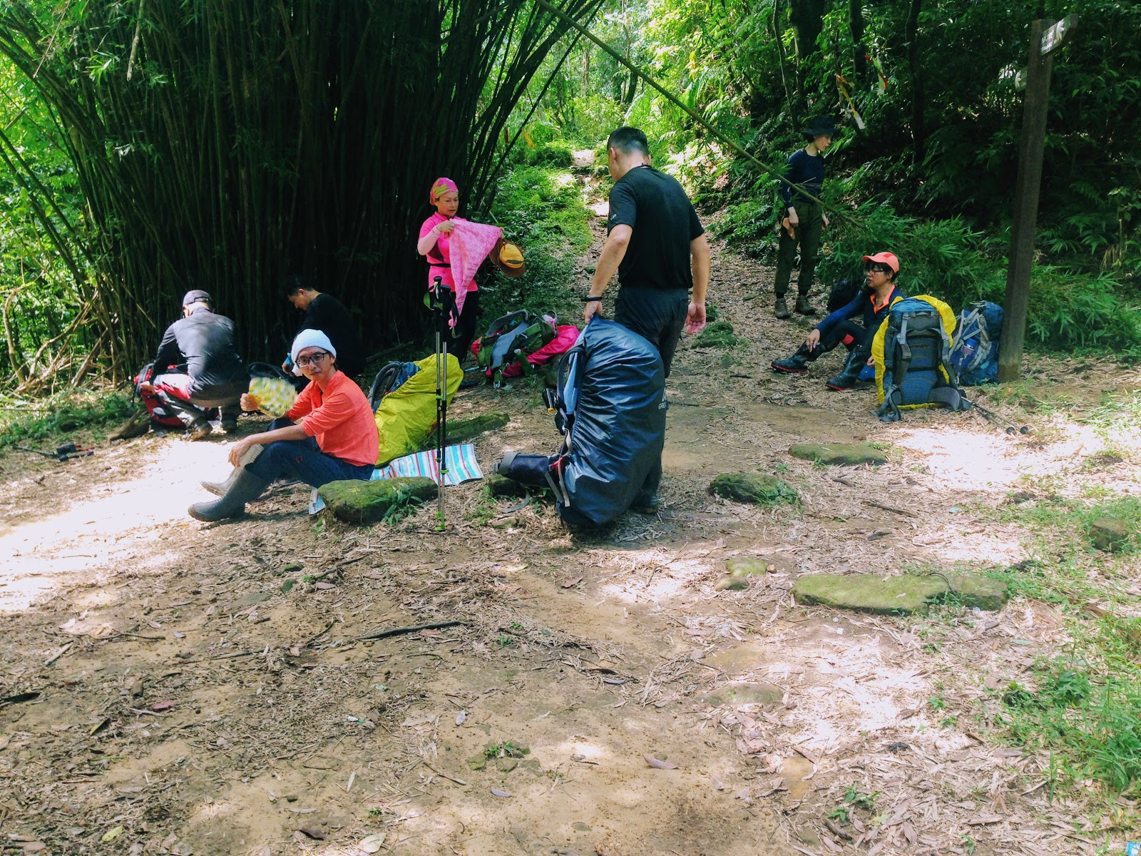 原地休息等後面的人跟上,每次休息都好想下背包,不過一直上上下下反而更耗體力,但要喝水時沒有男朋友同行的我本人還是得下背包才拿得到,所以經過這次經驗必須承認,重裝爬山必須先準備一個男人(呃不是)必須先購入一枚水袋。